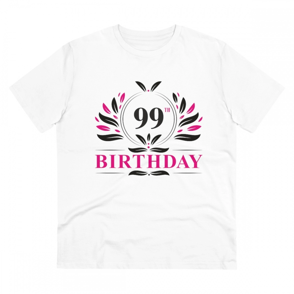 Men’s PC Cotton 99th Birthday Printed T Shirt (Color: White, Thread Count: 180GSM)
