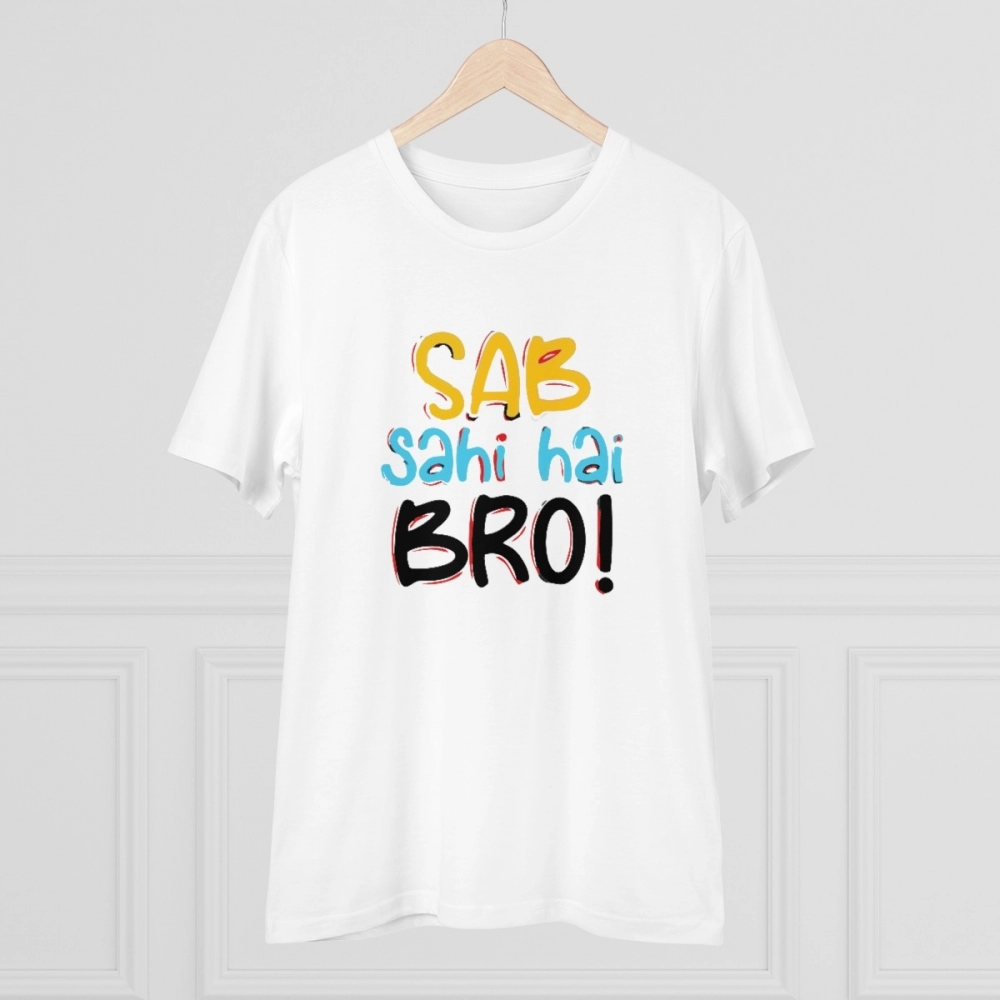 Men’s PC Cotton Sab Sahi Hai Bro Printed T Shirt (Color: White, Thread Count: 180GSM)