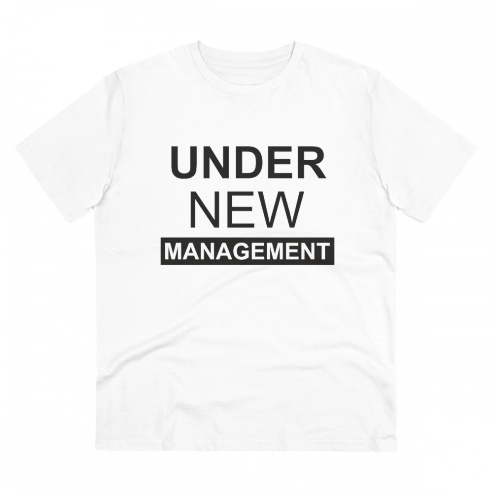 Be the first to review “Men’s PC Cotton Under New Management Desing Printed T Shirt (Color: White, Thread Count: 180GSM)”