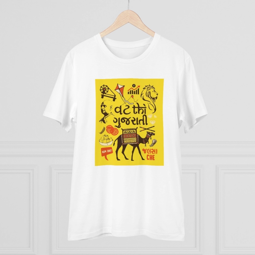 Men’s PC Cotton Vat Thi Gujarati Printed T Shirt (Color: White, Thread Count: 180GSM)