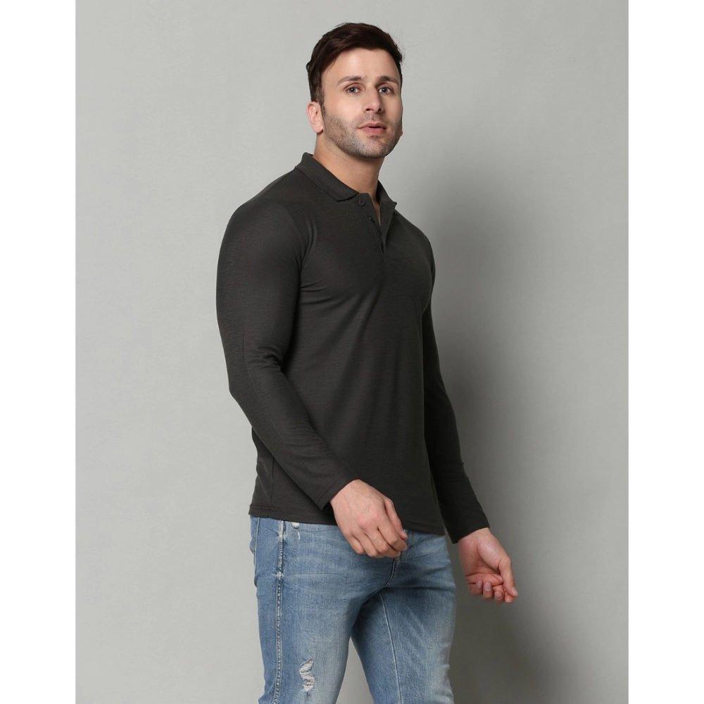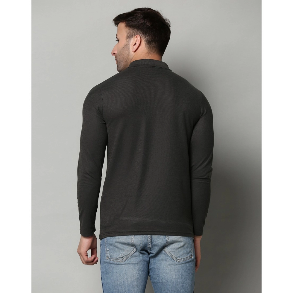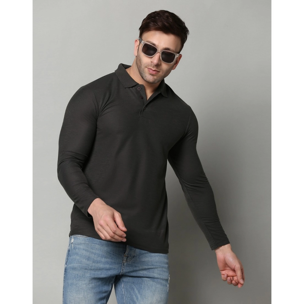 Men’s?Casual Full Sleeve Solid Cotton Blended Polo Neck T-shirt