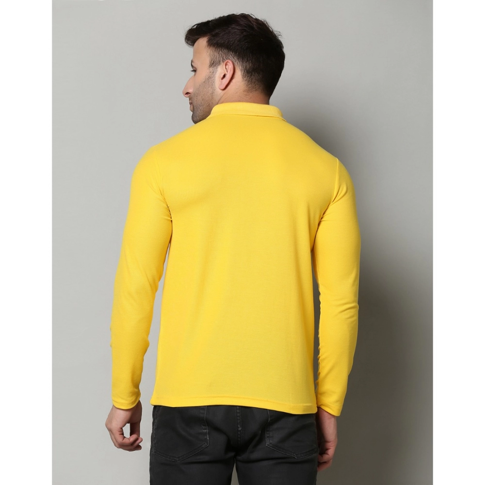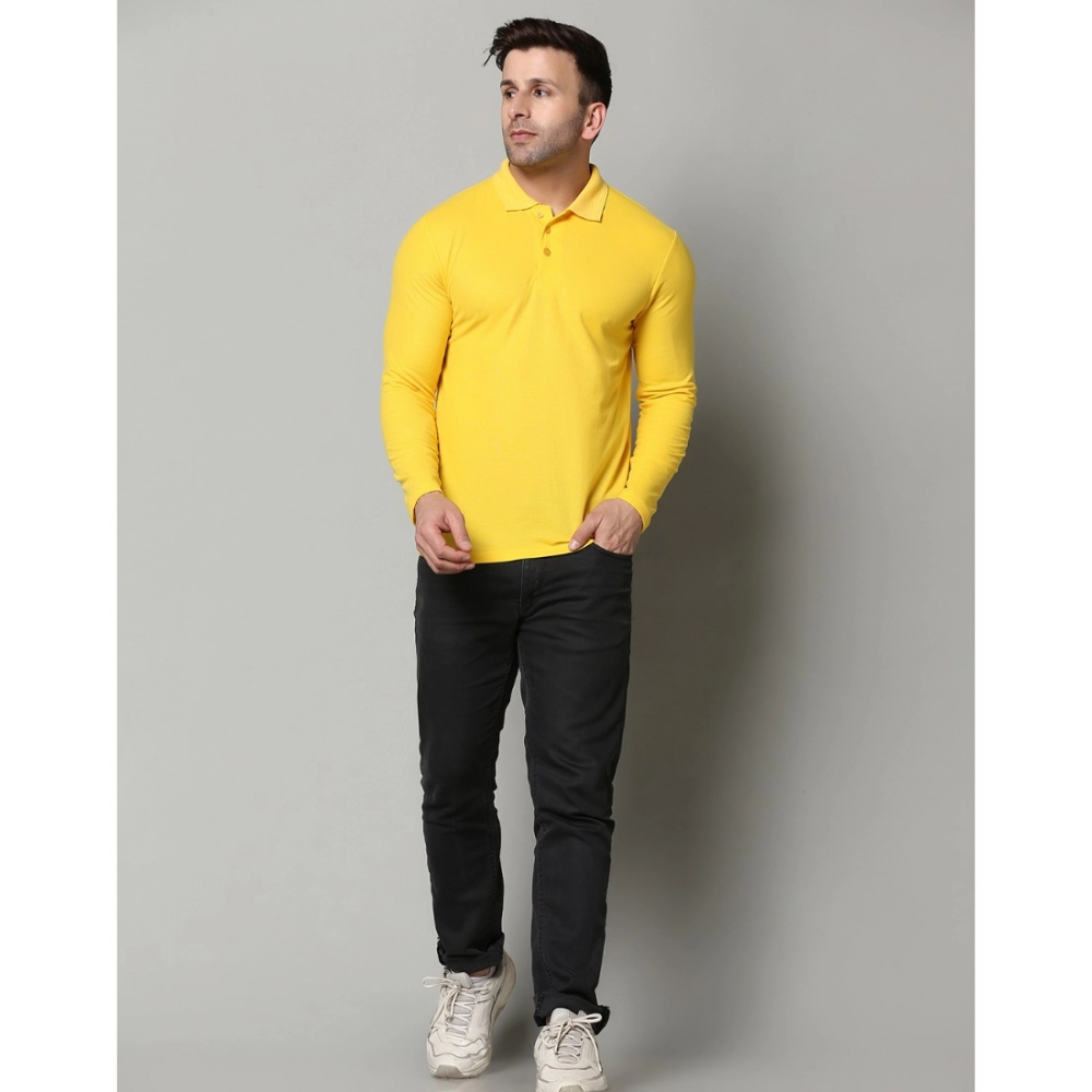 Men’s?Casual Full Sleeve Solid Cotton Blended Polo Neck T-shirt