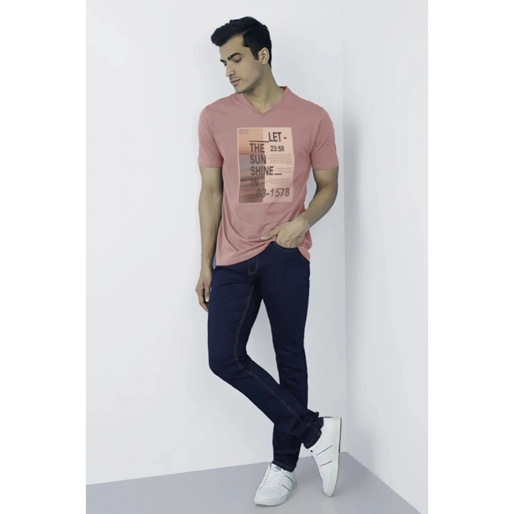 Men’s?Casual Half sleeve Digital Printed Cotton Crew Neck T-shirt (Coral)