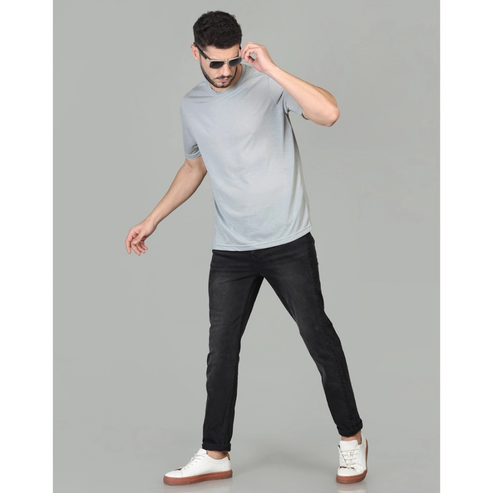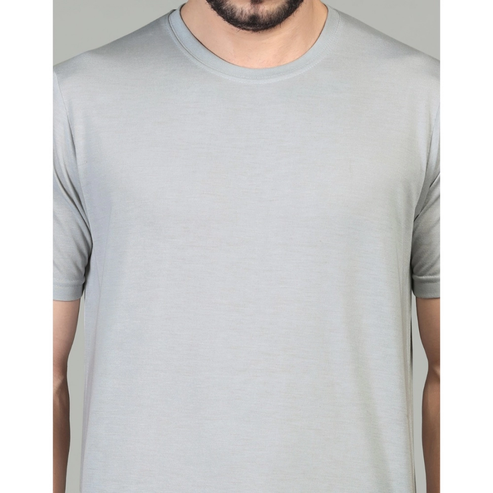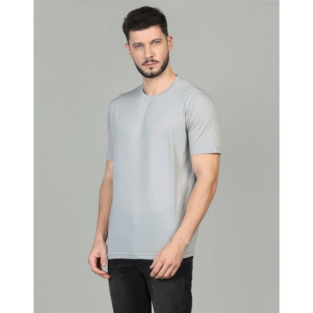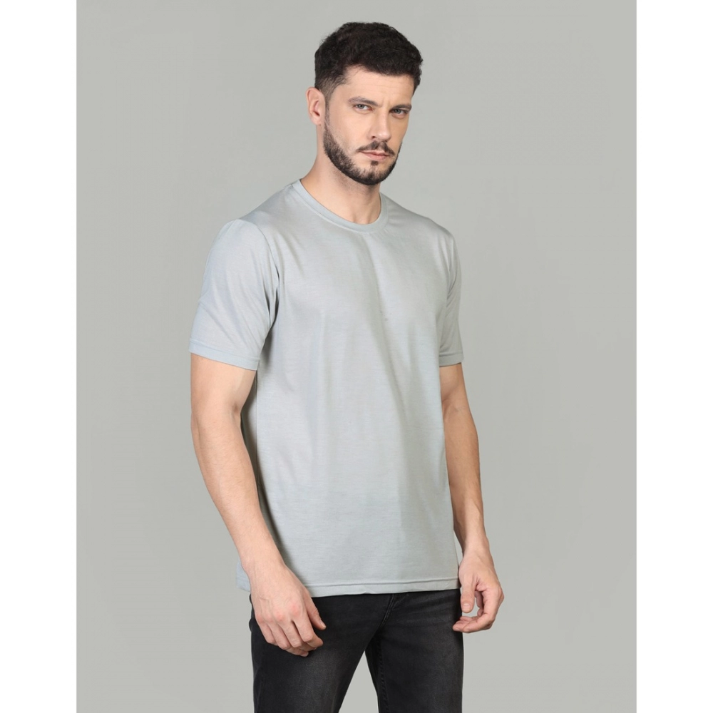 Men’s?Casual Half Sleeve Solid Cotton Blended Round Neck T-shirt (Grey)