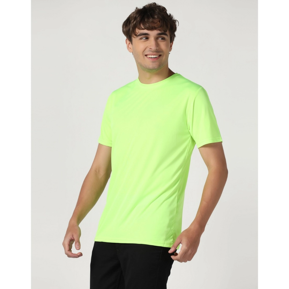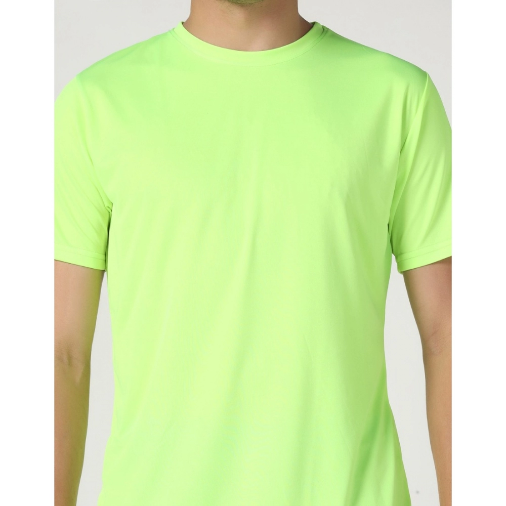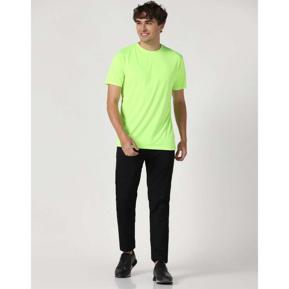 Men’s?Casual Half Sleeve Solid Polyester Round Neck T-shirt (Neon)