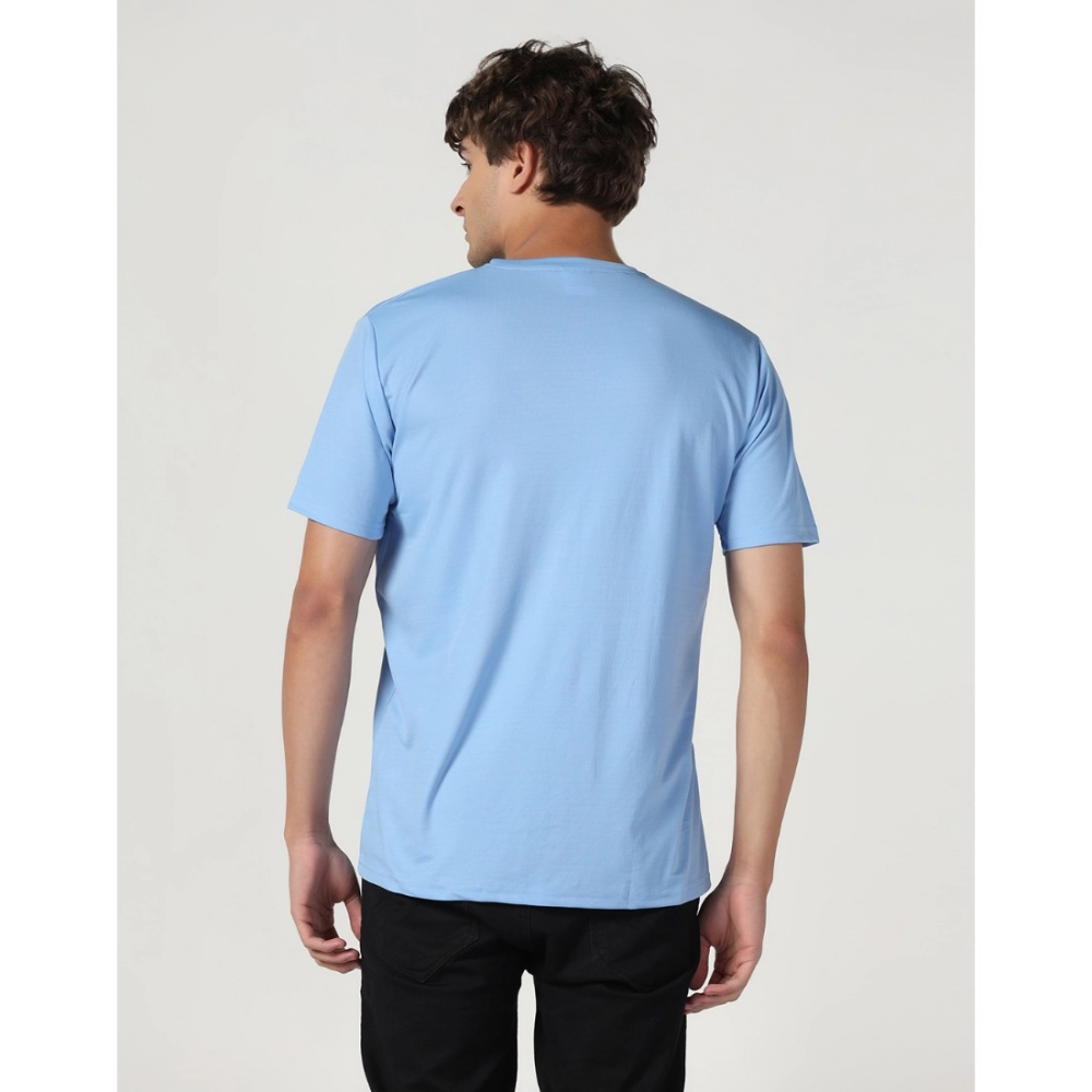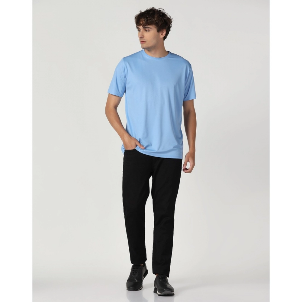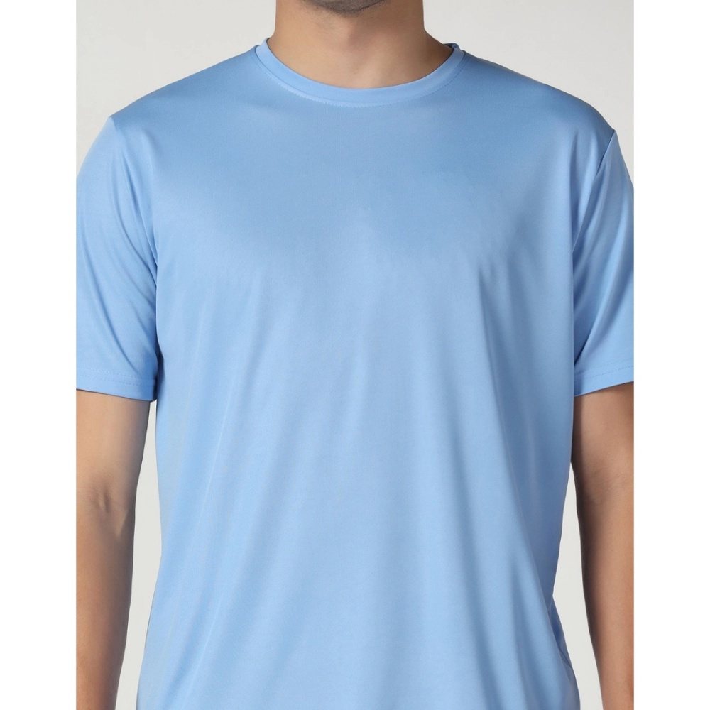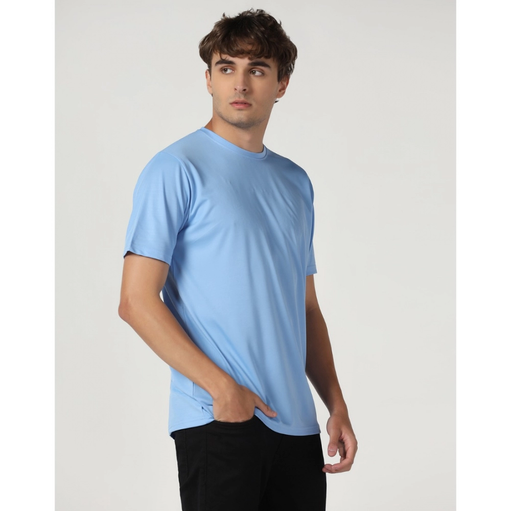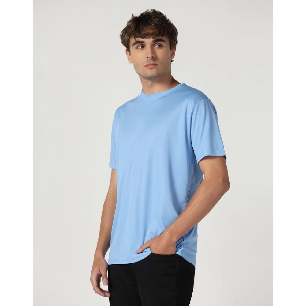 Men’s?Casual Half Sleeve Solid Polyester Round Neck T-shirt (Sky)