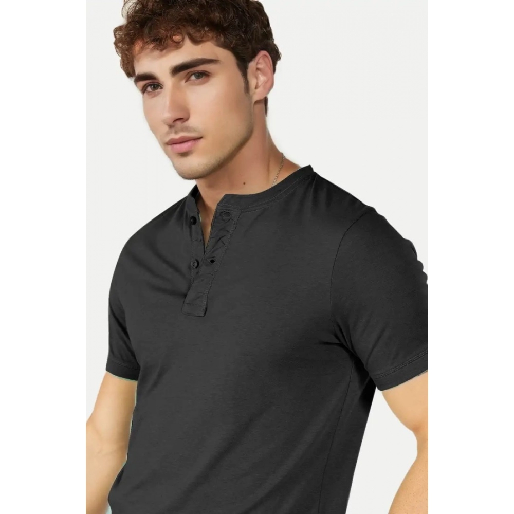 Men’s?Casual Half sleeve Solid?Cotton Henley Neck T-shirt