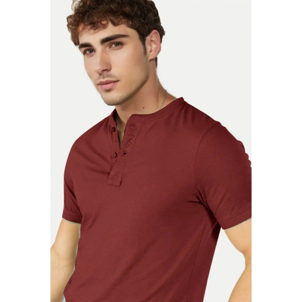 Men’s?Casual Half sleeve Solid?Cotton Henley Neck T-shirt (Maroon)