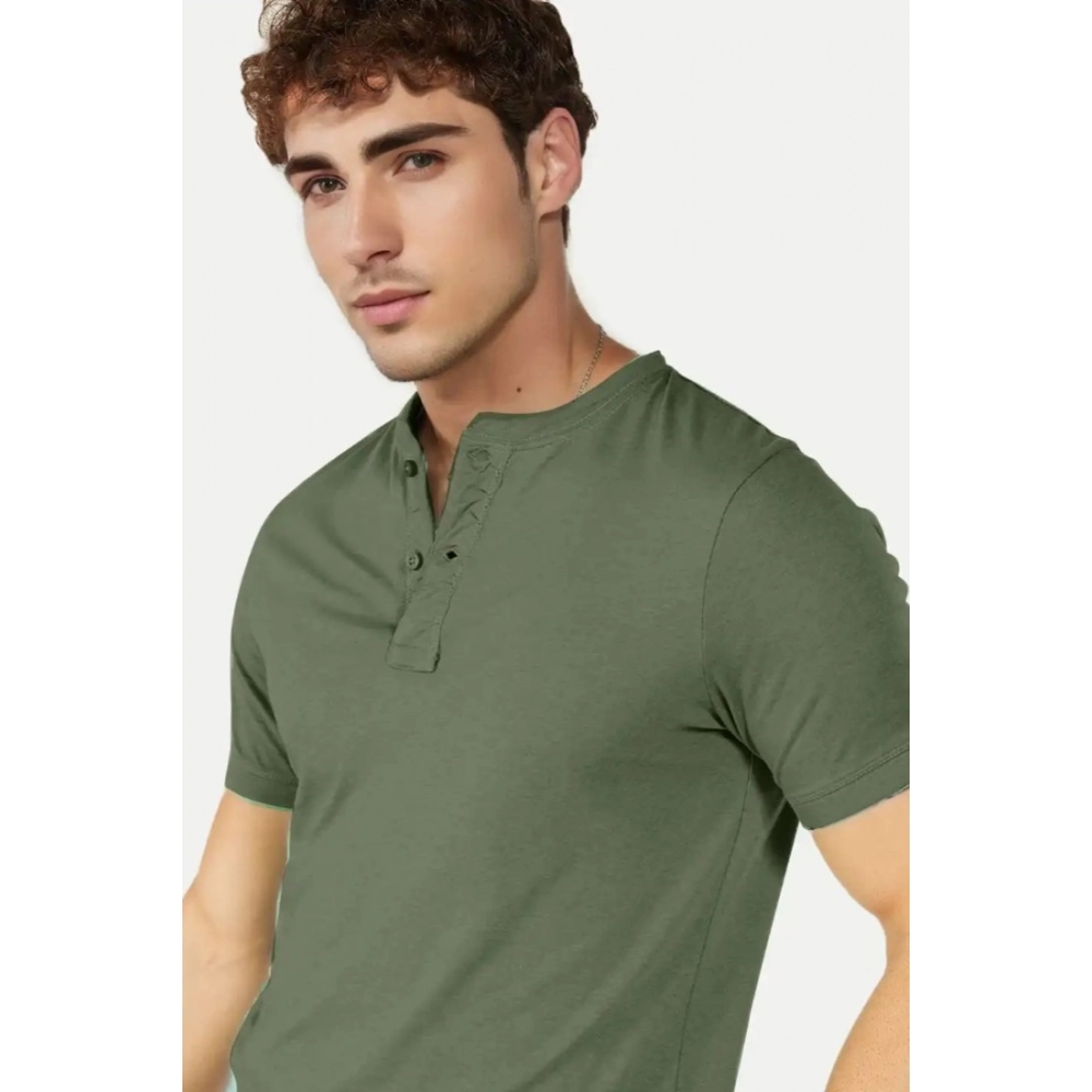Men’s?Casual Half sleeve Solid?Cotton Henley Neck T-shirt
