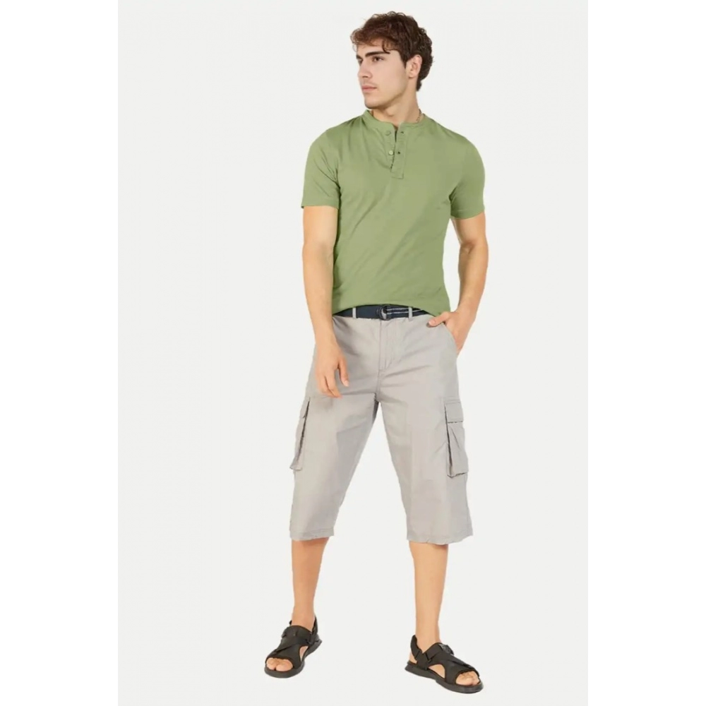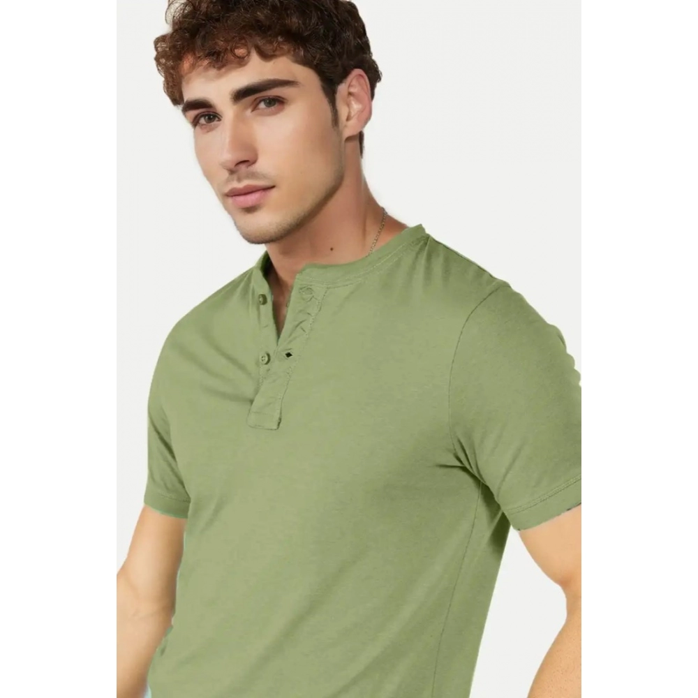 Men’s?Casual Half sleeve Solid?Cotton Henley Neck T-shirt