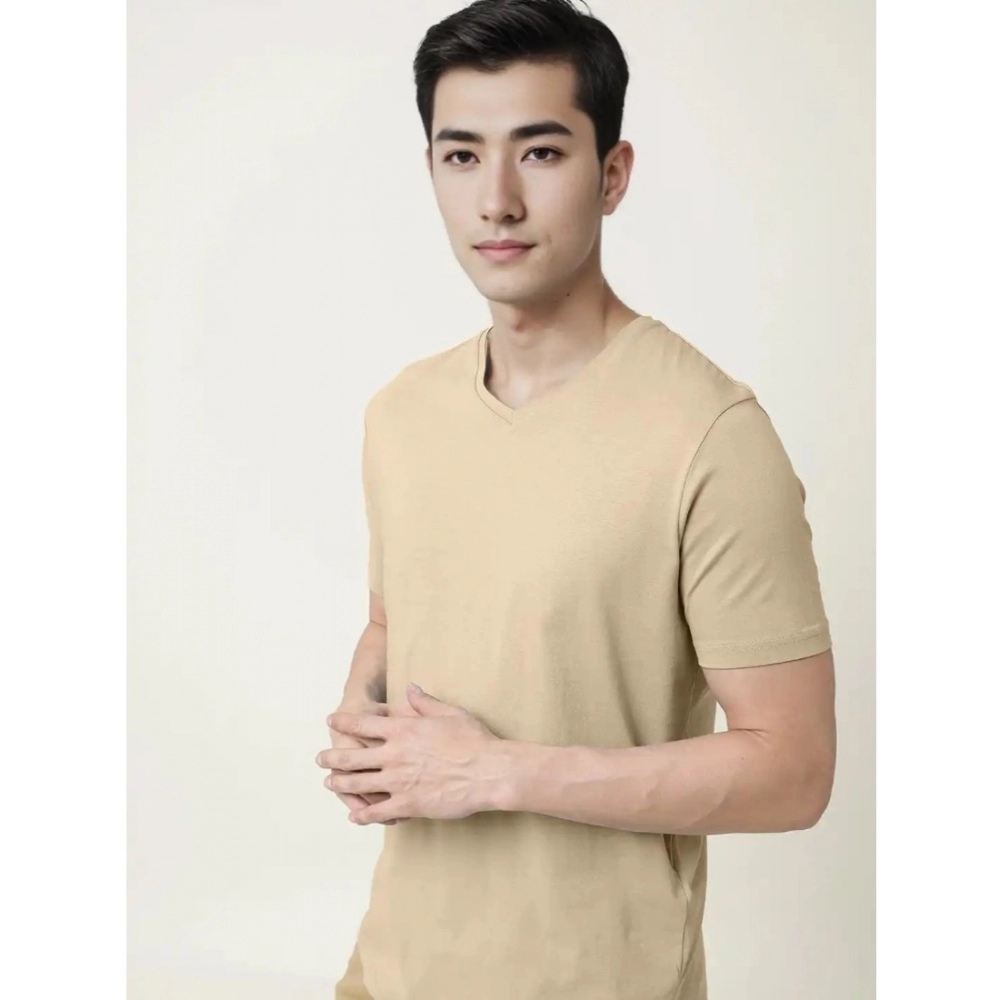 Men’s?Casual Half sleeve Solid?Cotton V Neck T-shirt