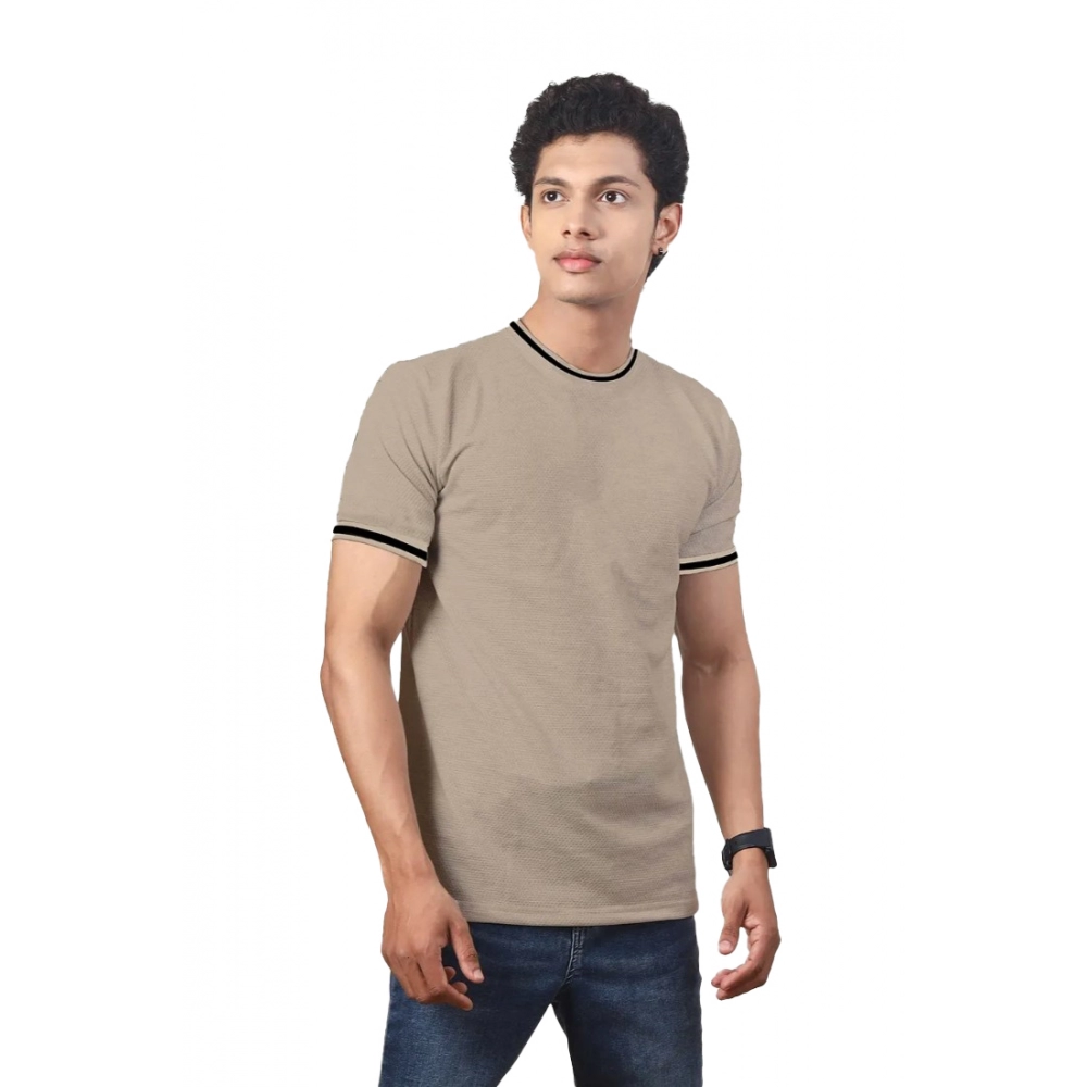 Men’s?Casual Half sleeve Solid?Polyester Crew Neck T-shirt