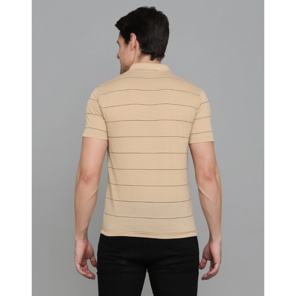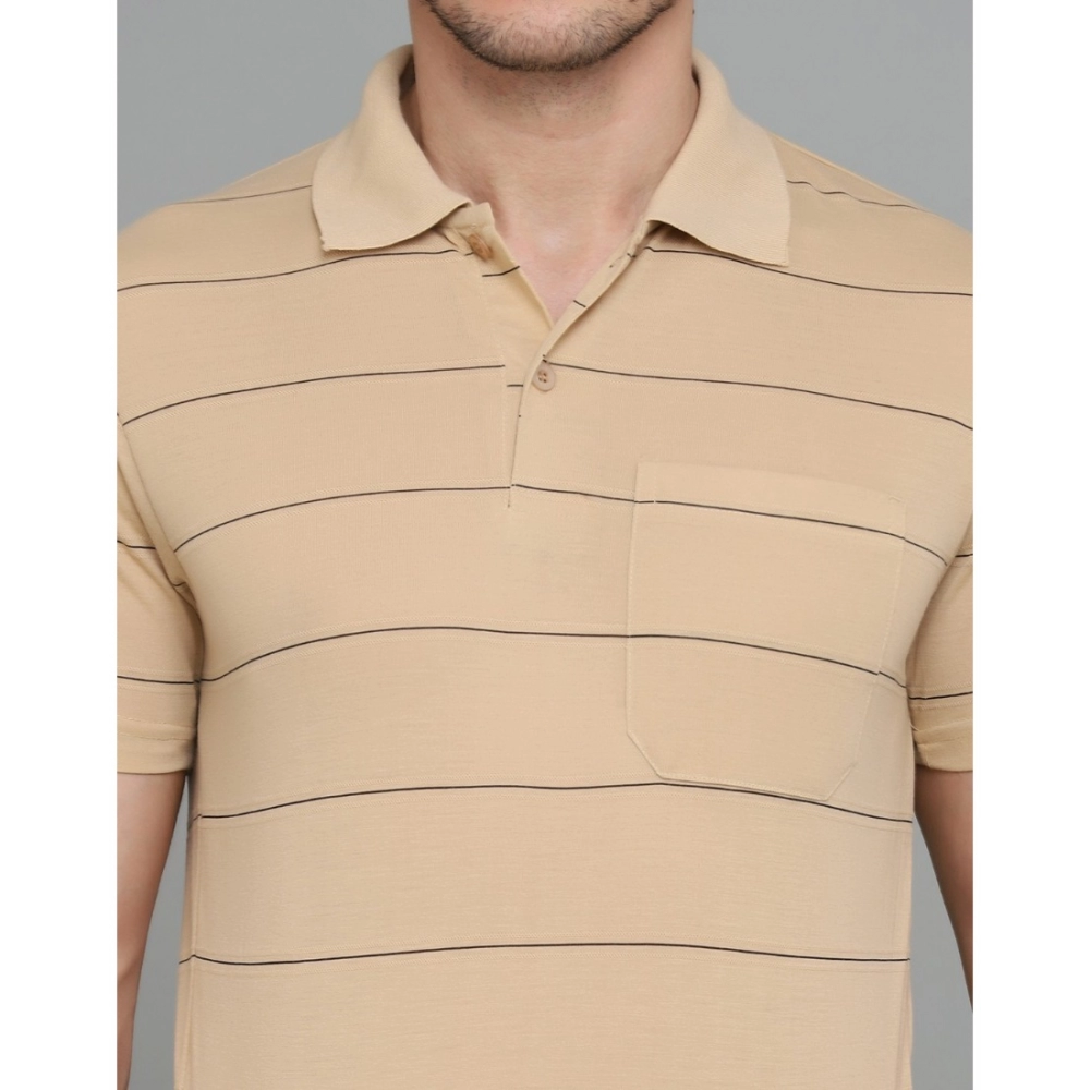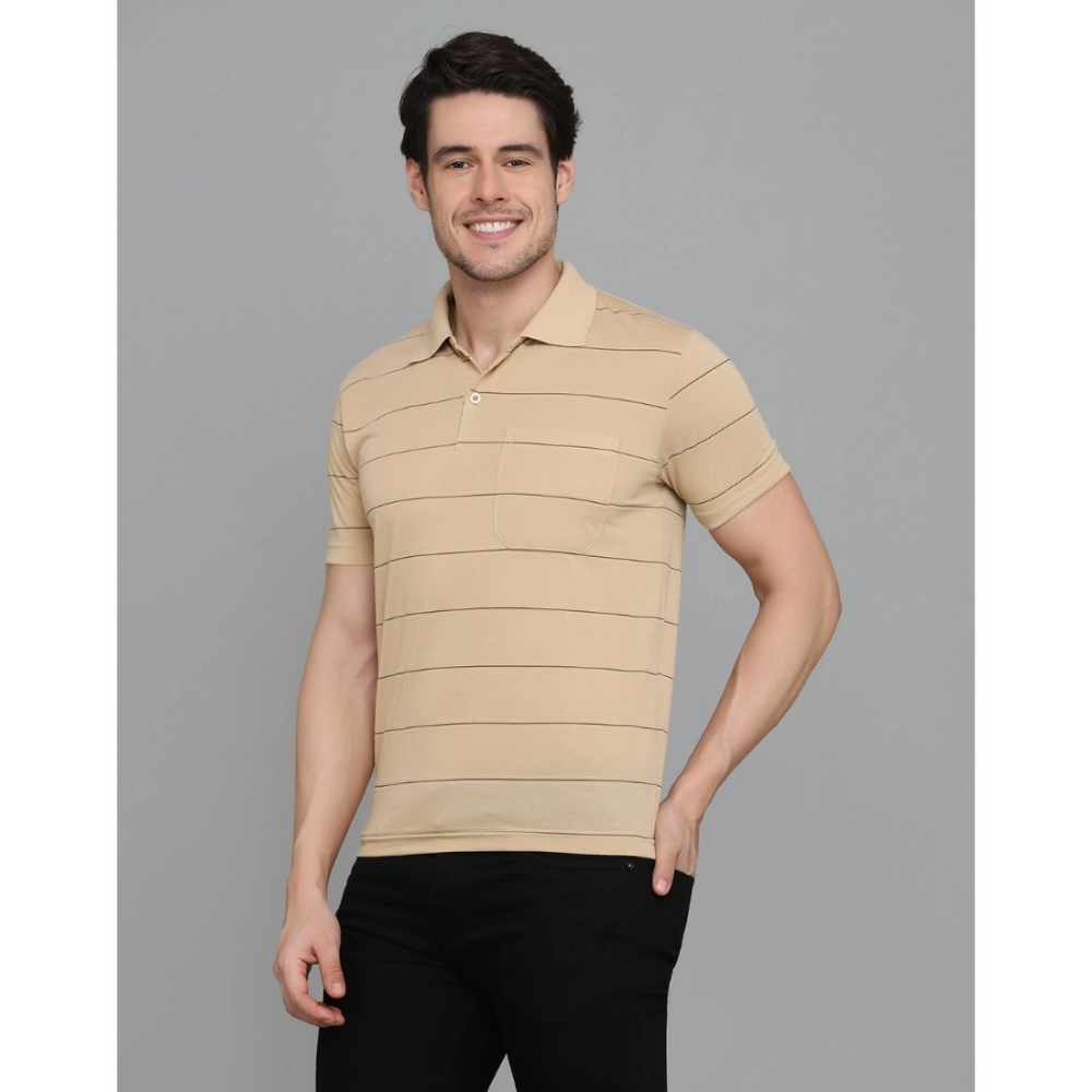 Men’s?Casual Half Sleeve Striped Cotton Blended Polo Neck T-shirt