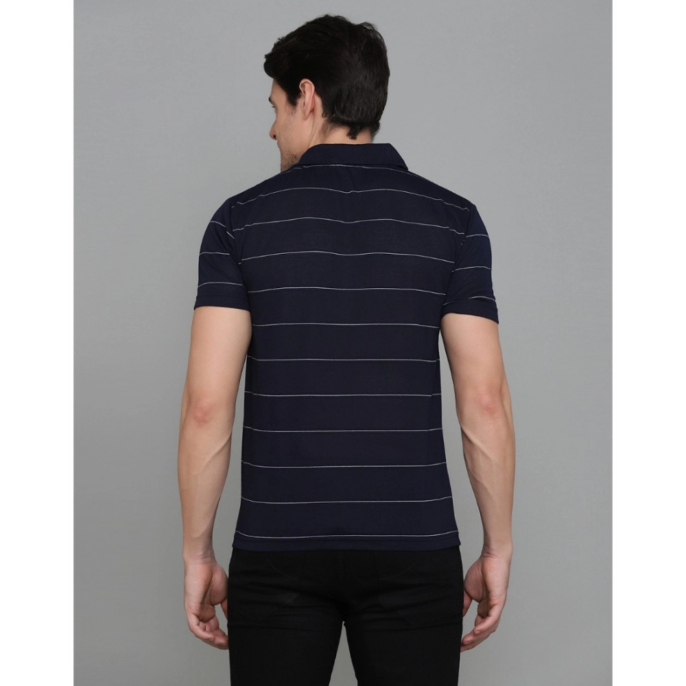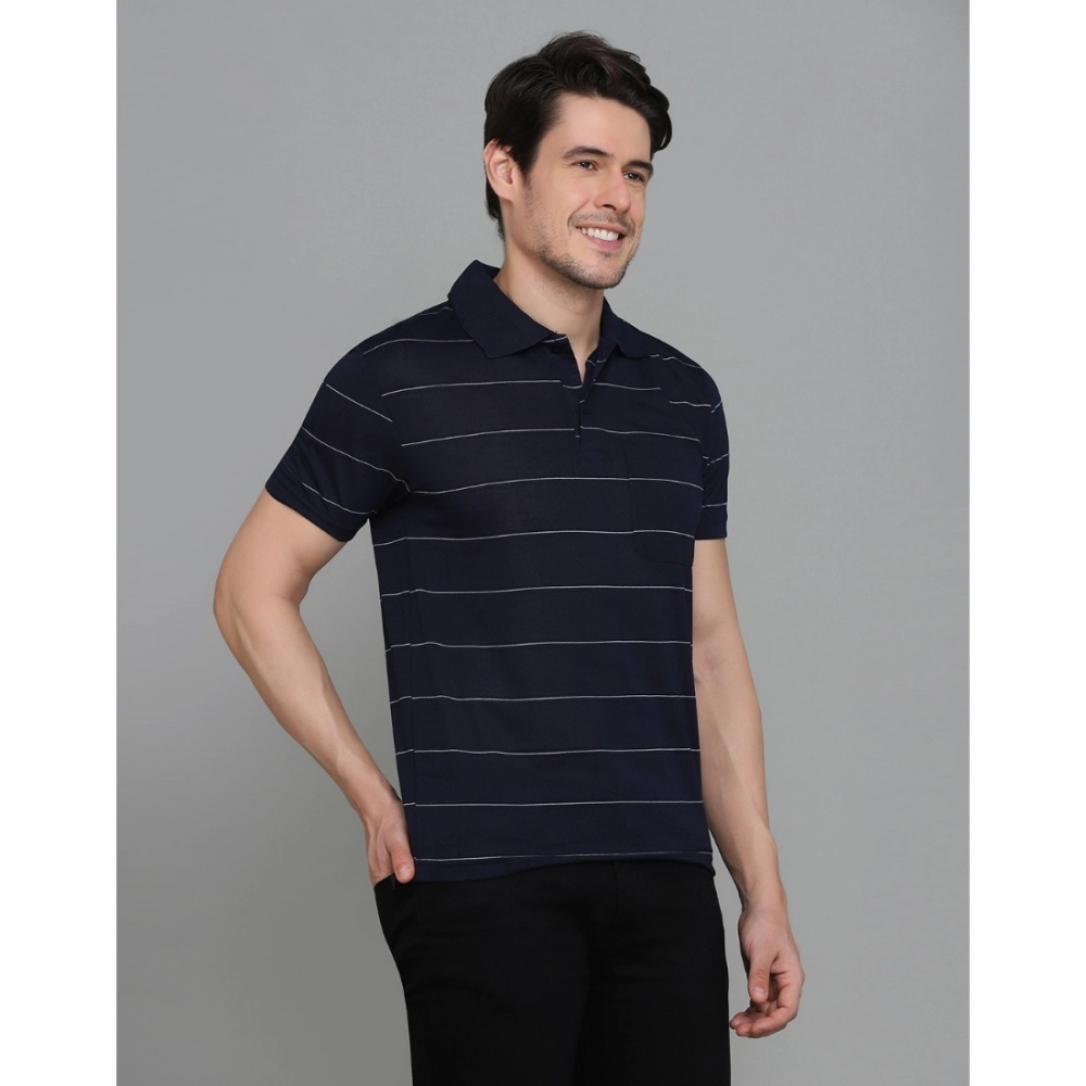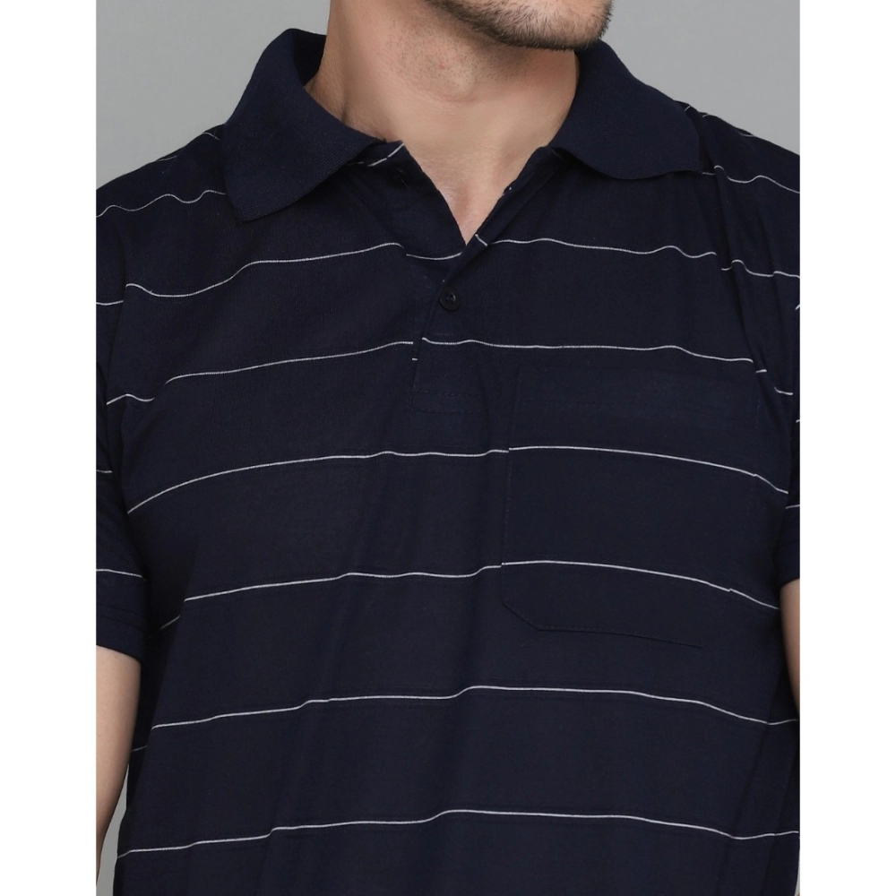 Men’s?Casual Half Sleeve Striped Cotton Blended Polo Neck T-shirt
