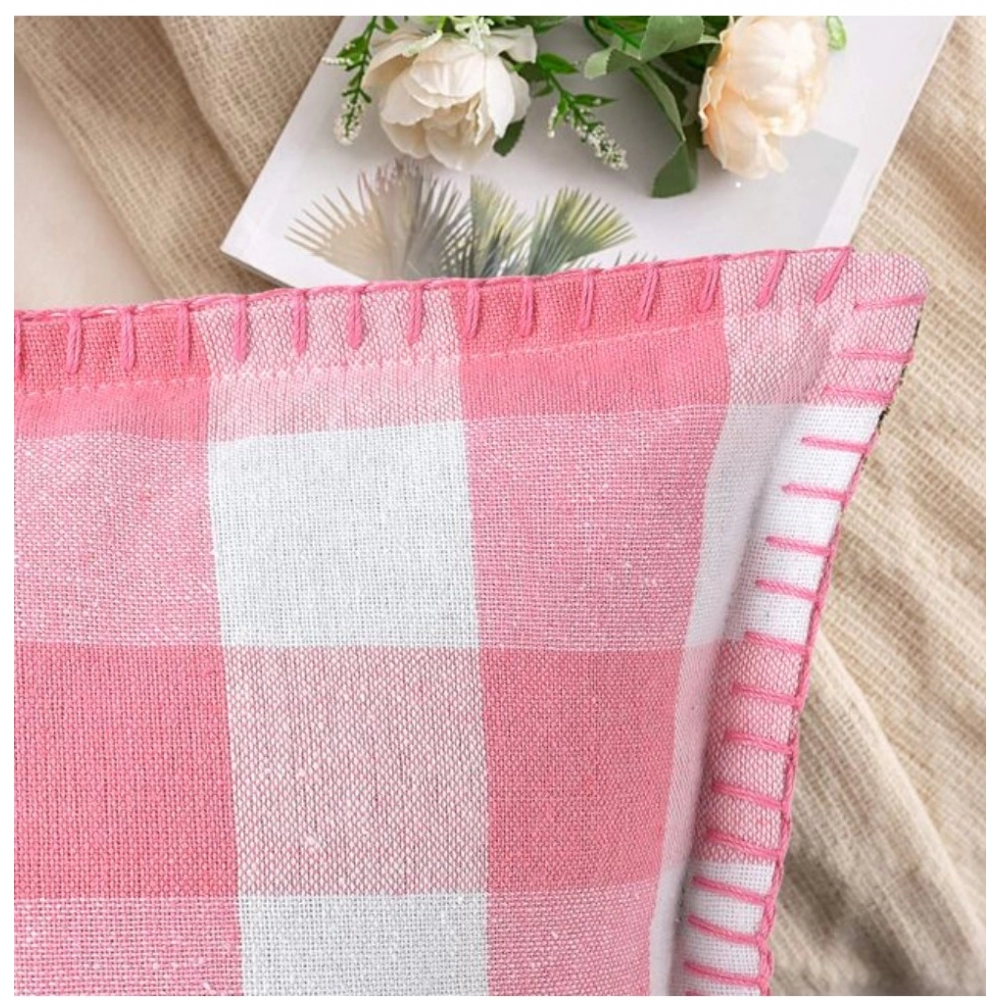 Pack Of_2 Cotton Checkered Cushion Cover With Blanket Stitch