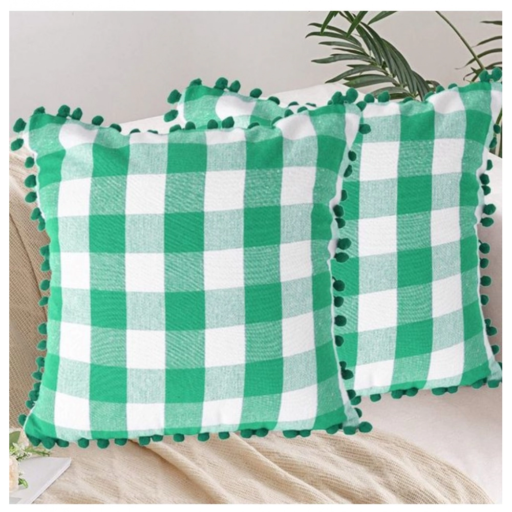 Pack Of_2 Cotton Checkered Cushion Cover With Pom Pom
