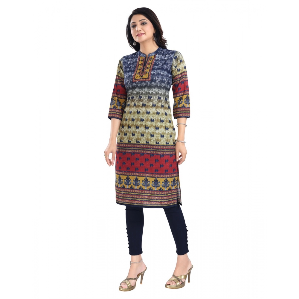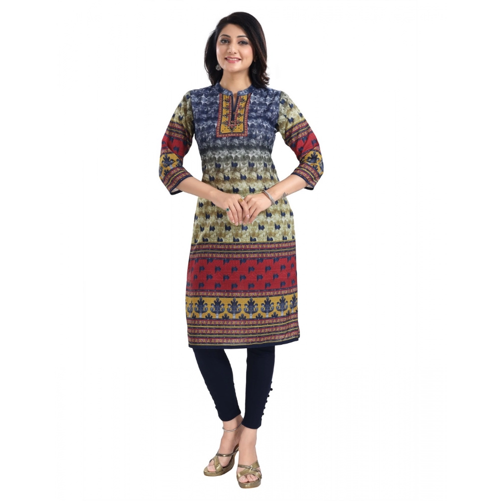 Women’s 3/4th Sleeve Cotton Blend Tunic Long Kurti (Multicolor)