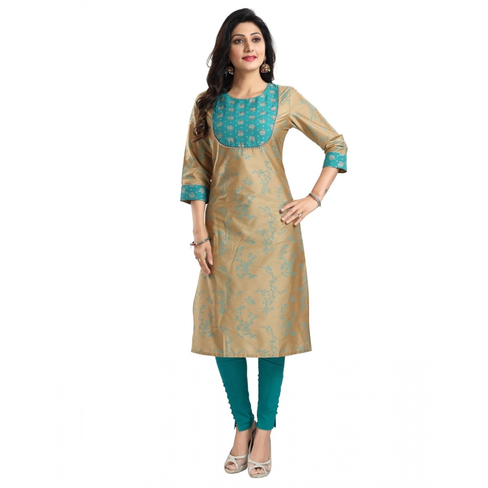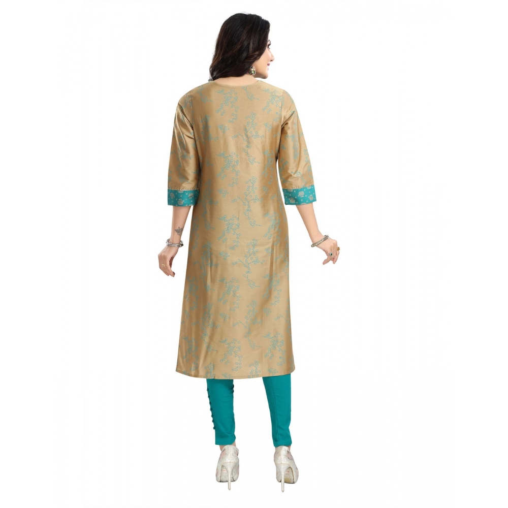 Women’s 3/4th Sleeve Silk Blend Tunic Long Kurti (Beige)