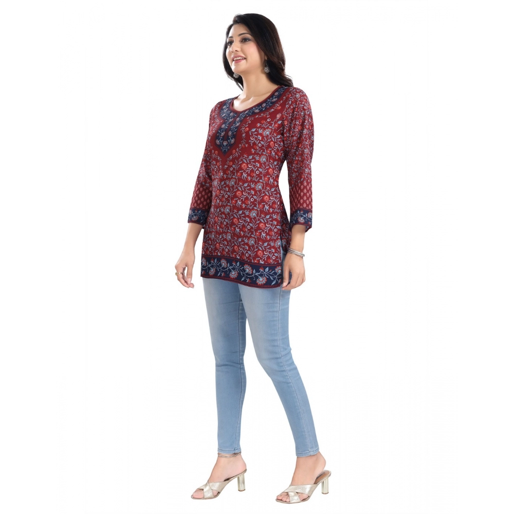 Women’s 3/4th Sleeve Summer Cool Tunic Short Top (Maroon)