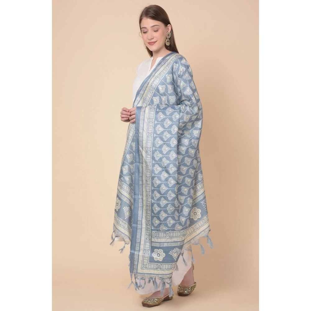 Women’s Art Silk Printed Dupatta (Grey, Length:?2.25 to 2.50 Mtr)