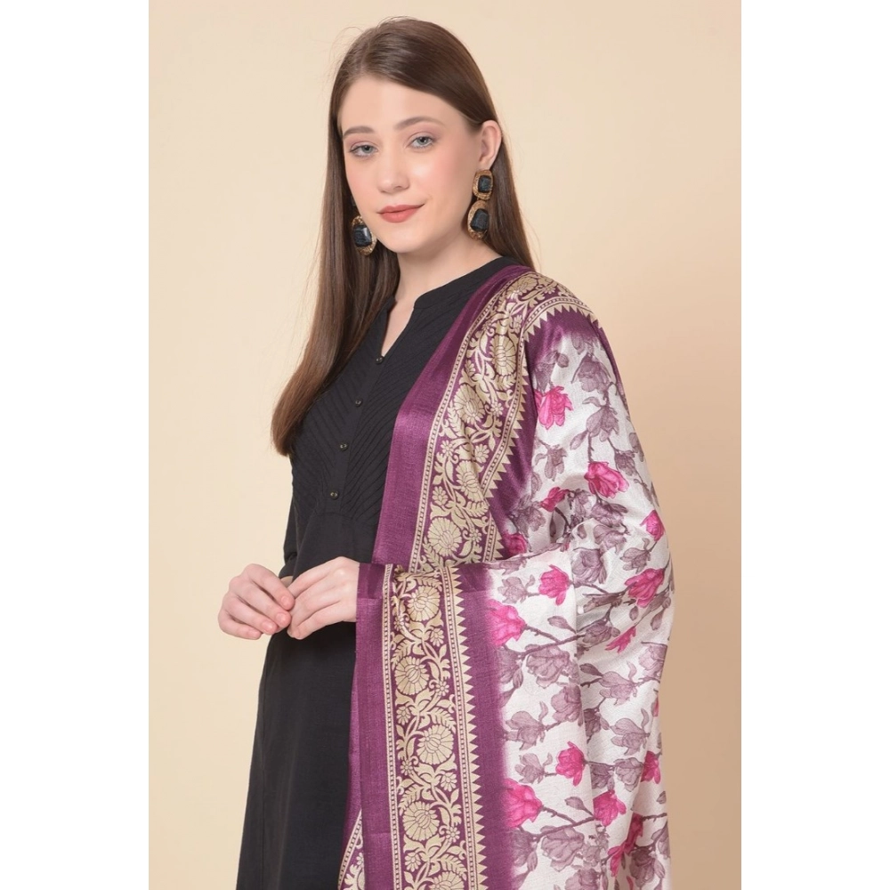 Women’s Art Silk Printed Dupatta (Purple, Length:?2.25 to 2.50 Mtr)