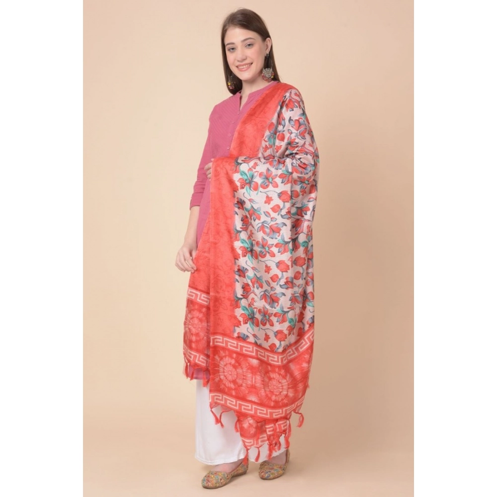Women’s Art Silk Printed Dupatta (Red, Length:?2.25 to 2.50 Mtr)