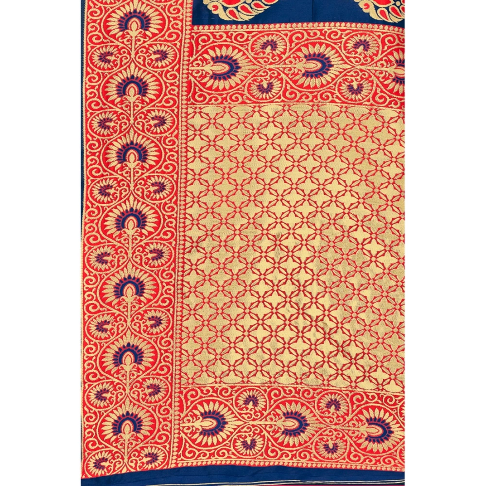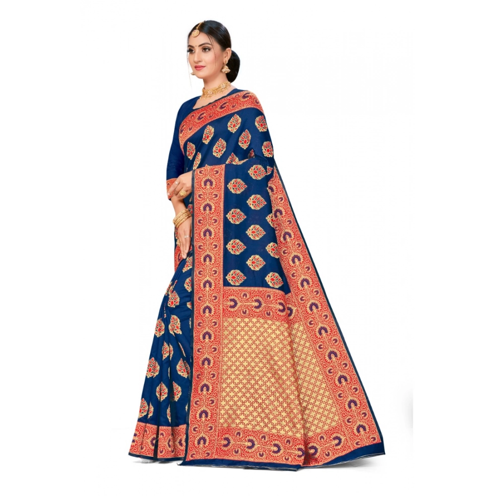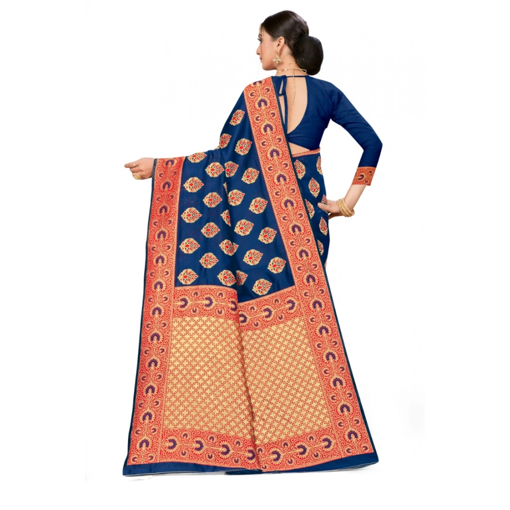 Women’s Banarasi Silk Designer Weaving Saree With Unstitched Blouse (Blue, 5.50 Mtrs)