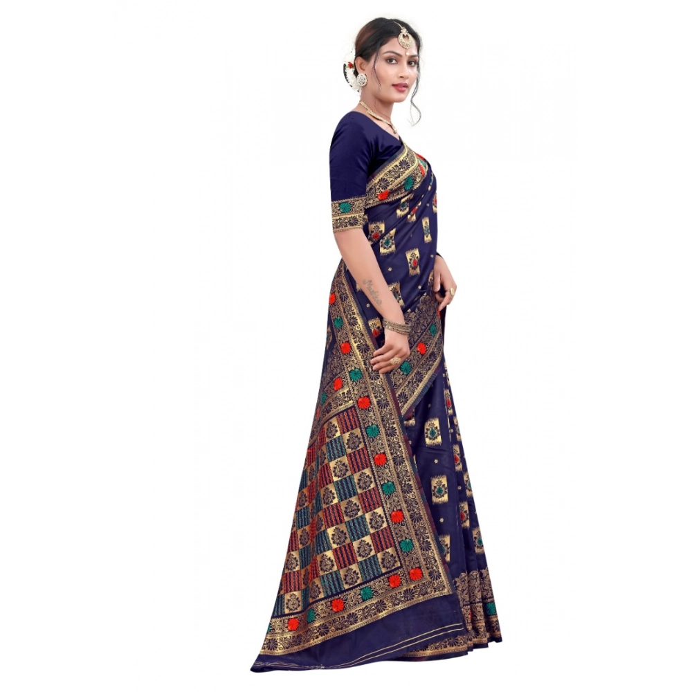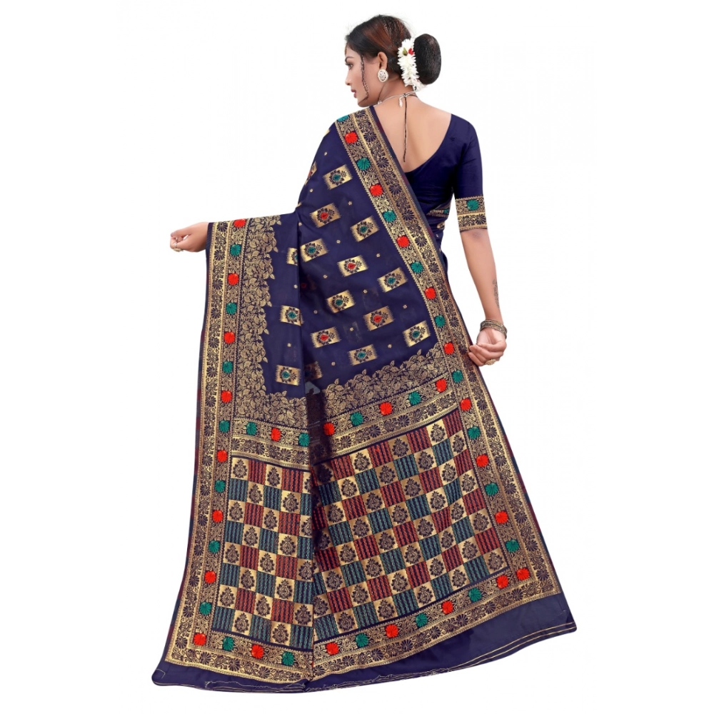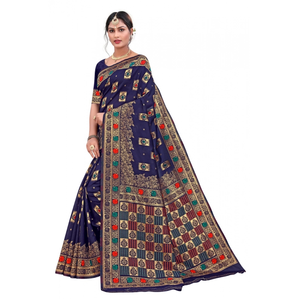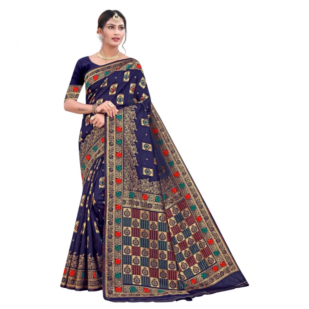 Women’s Banarasi Silk Designer Weaving Saree With Unstitched Blouse (Blue, 5.50 Mtrs)