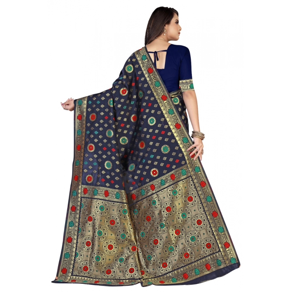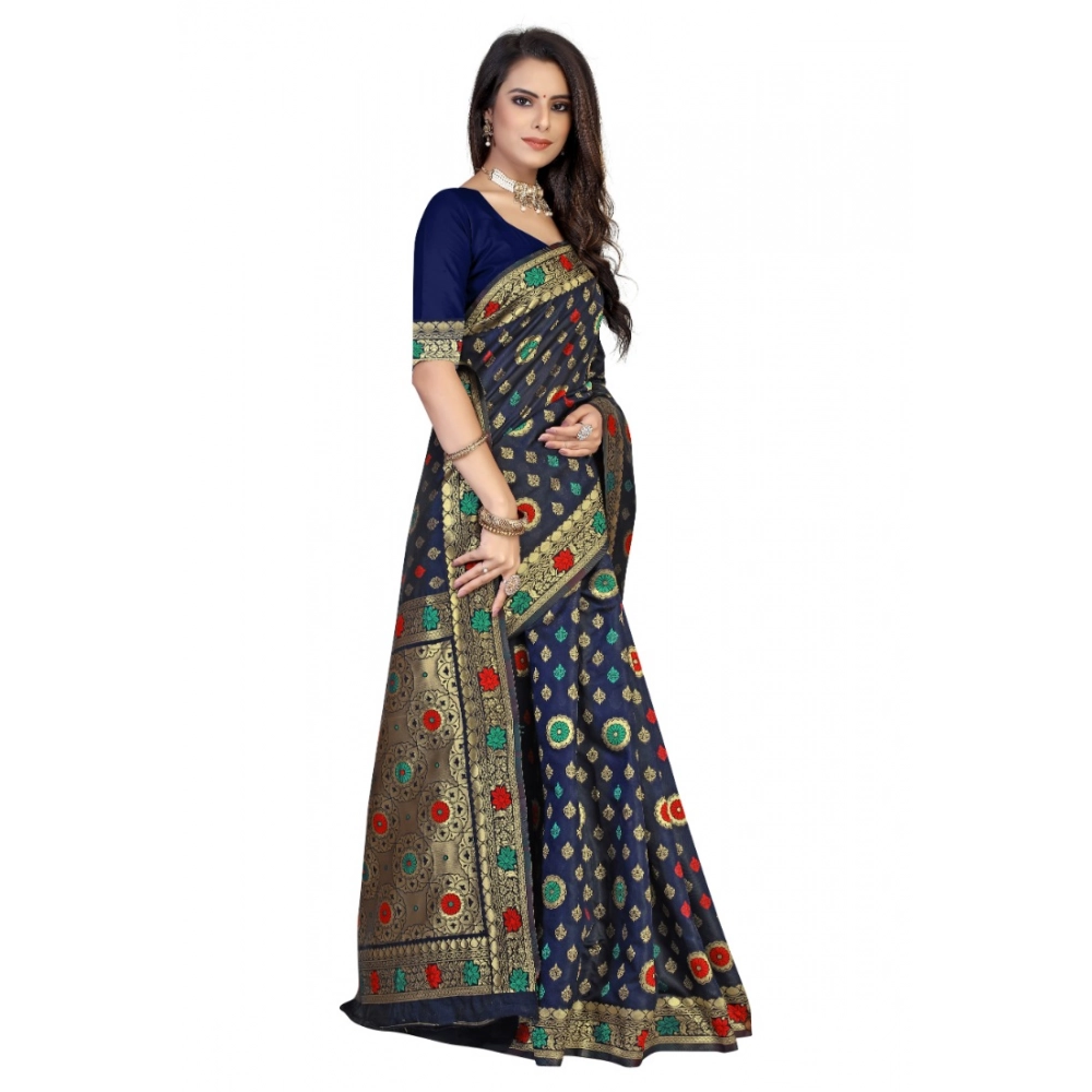 Women’s Banarasi Silk Designer Weaving Saree With Unstitched Blouse (Blue, 5.50 Mtrs)
