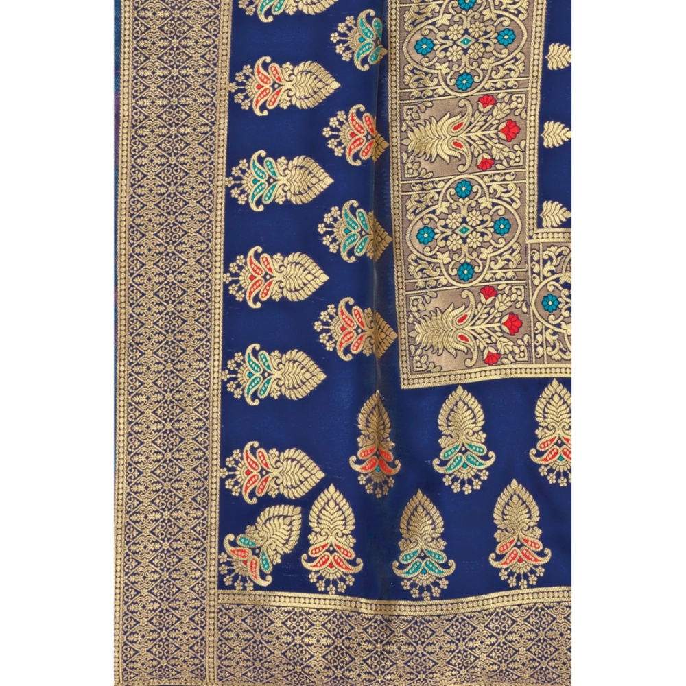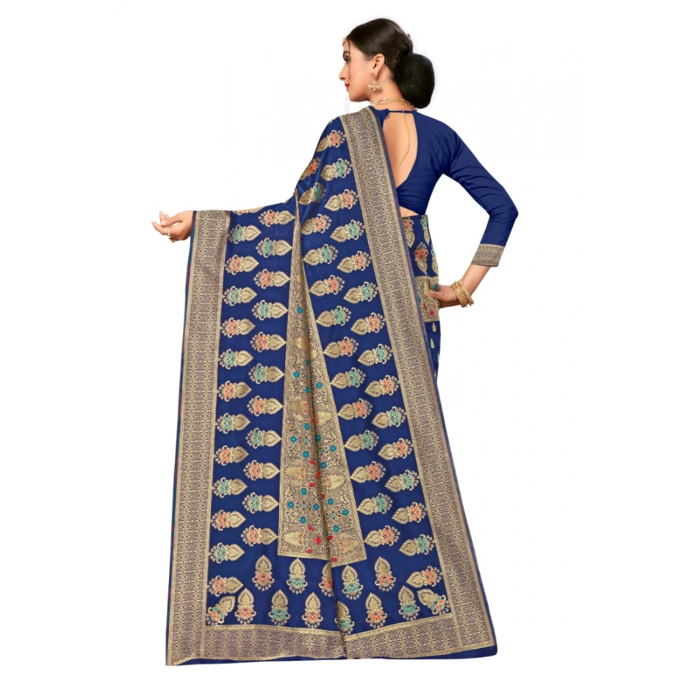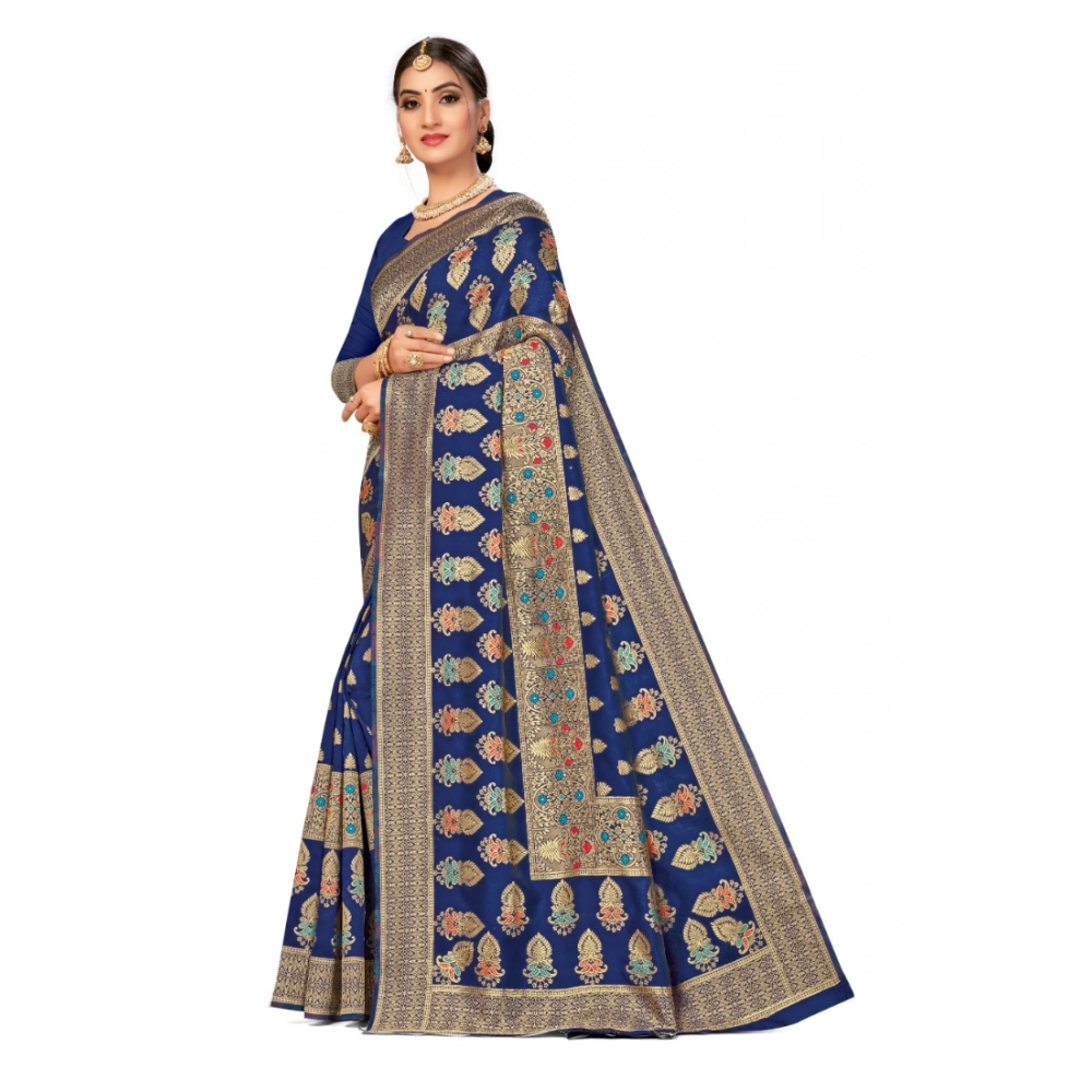Women’s Banarasi Silk Designer Weaving Saree With Unstitched Blouse (Blue, 5.50 Mtrs)