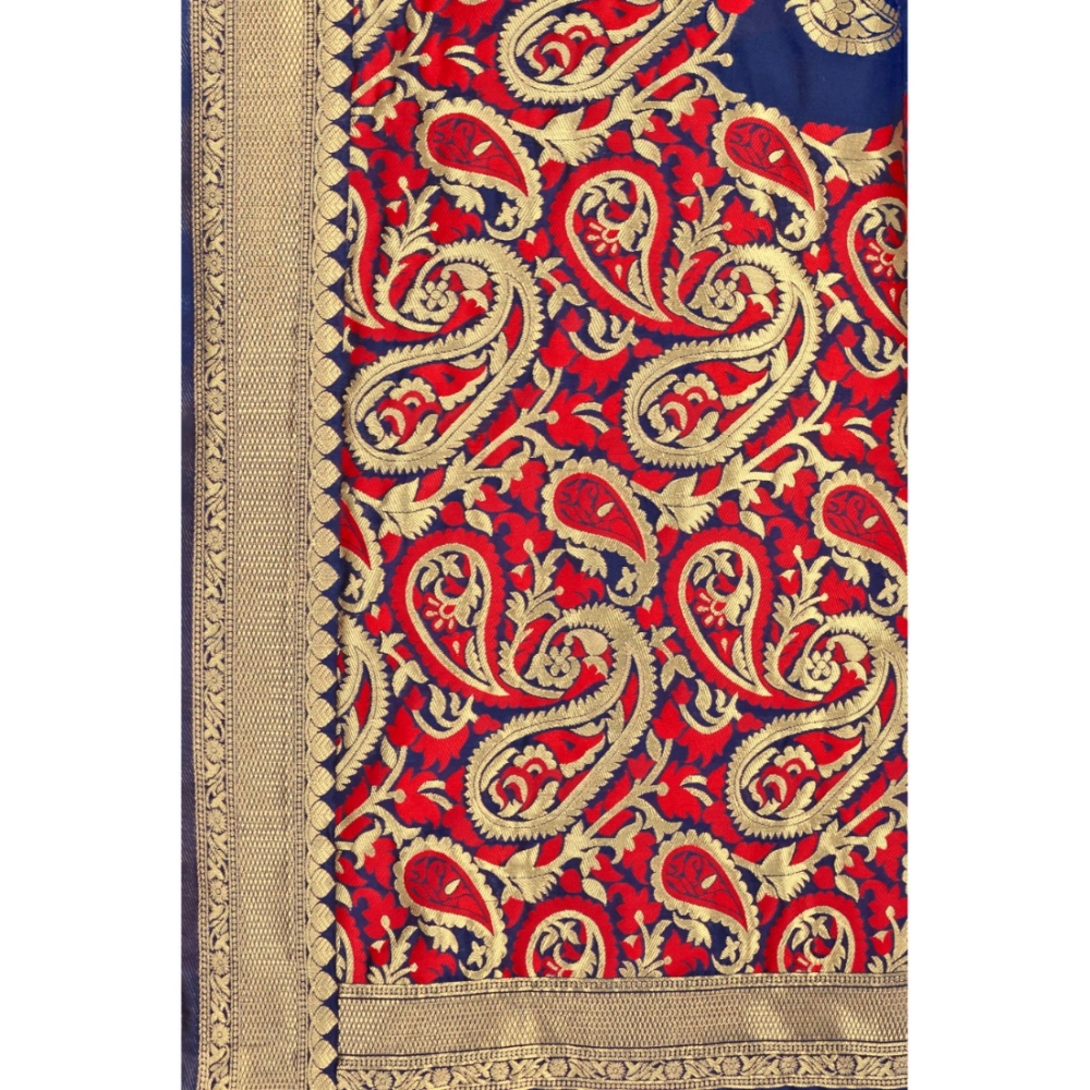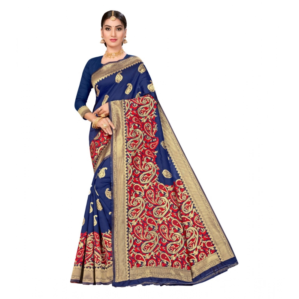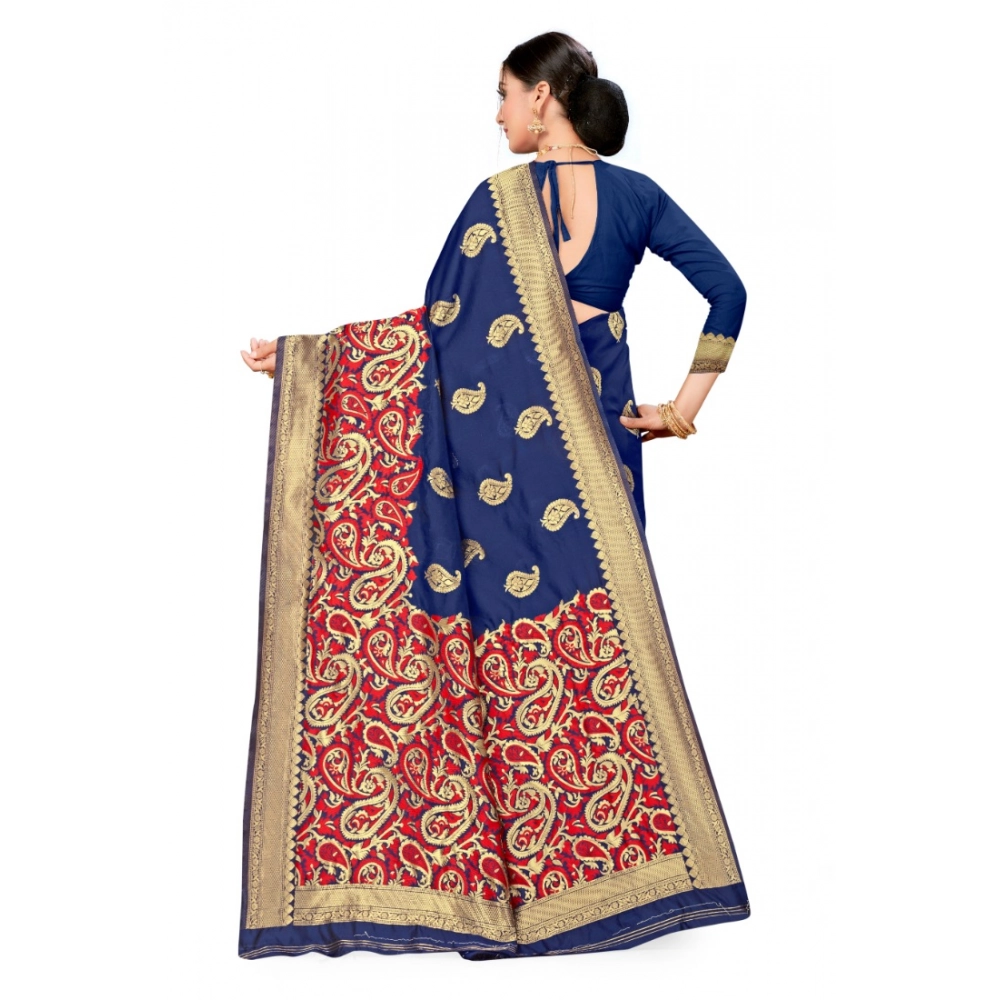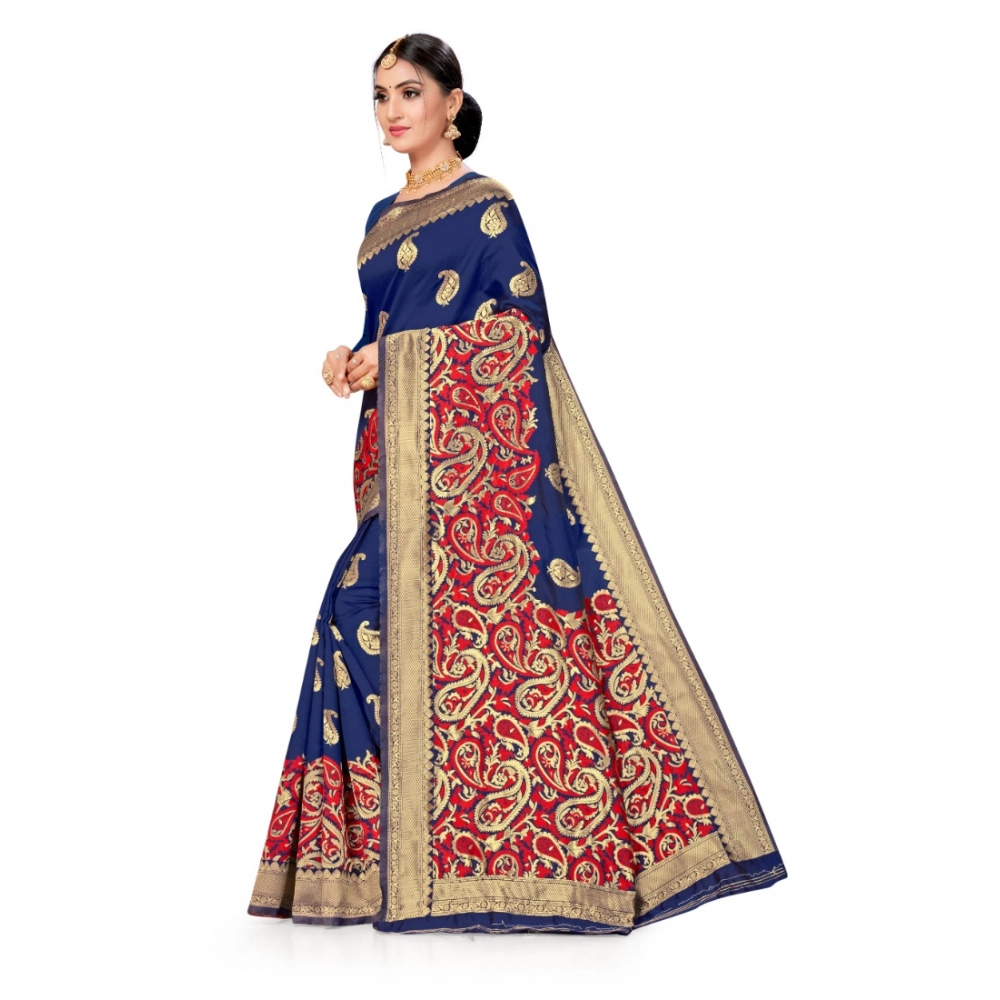Women’s Banarasi Silk Designer Weaving Saree With Unstitched Blouse (Blue, 5.50 Mtrs)
