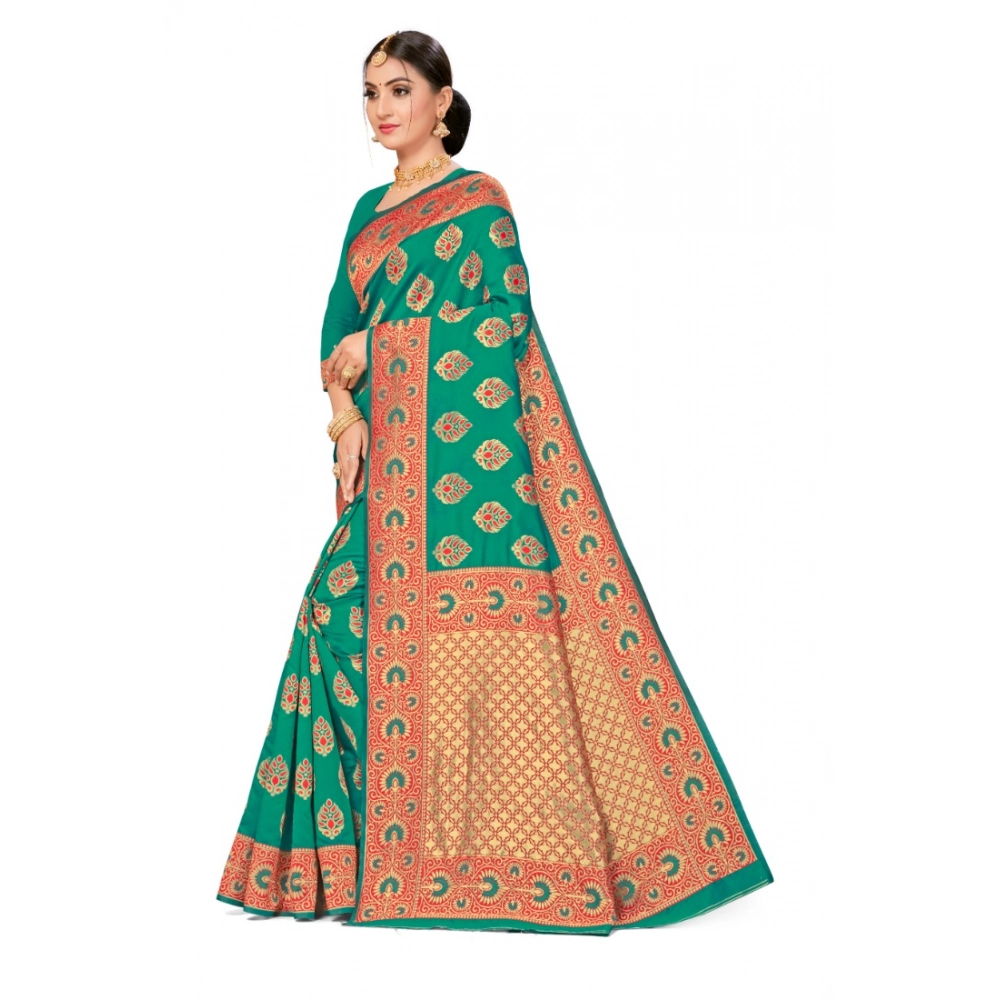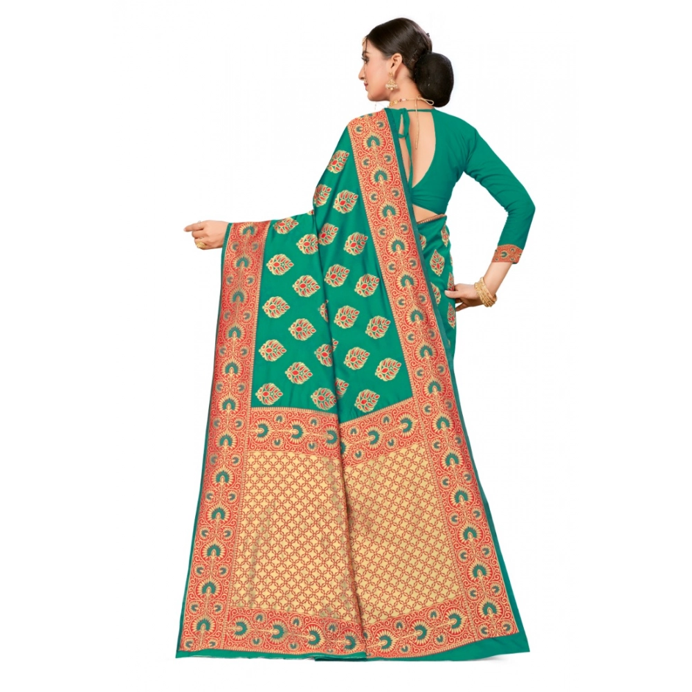 Women’s Banarasi Silk Designer Weaving Saree With Unstitched Blouse (Green, 5.50 Mtrs)