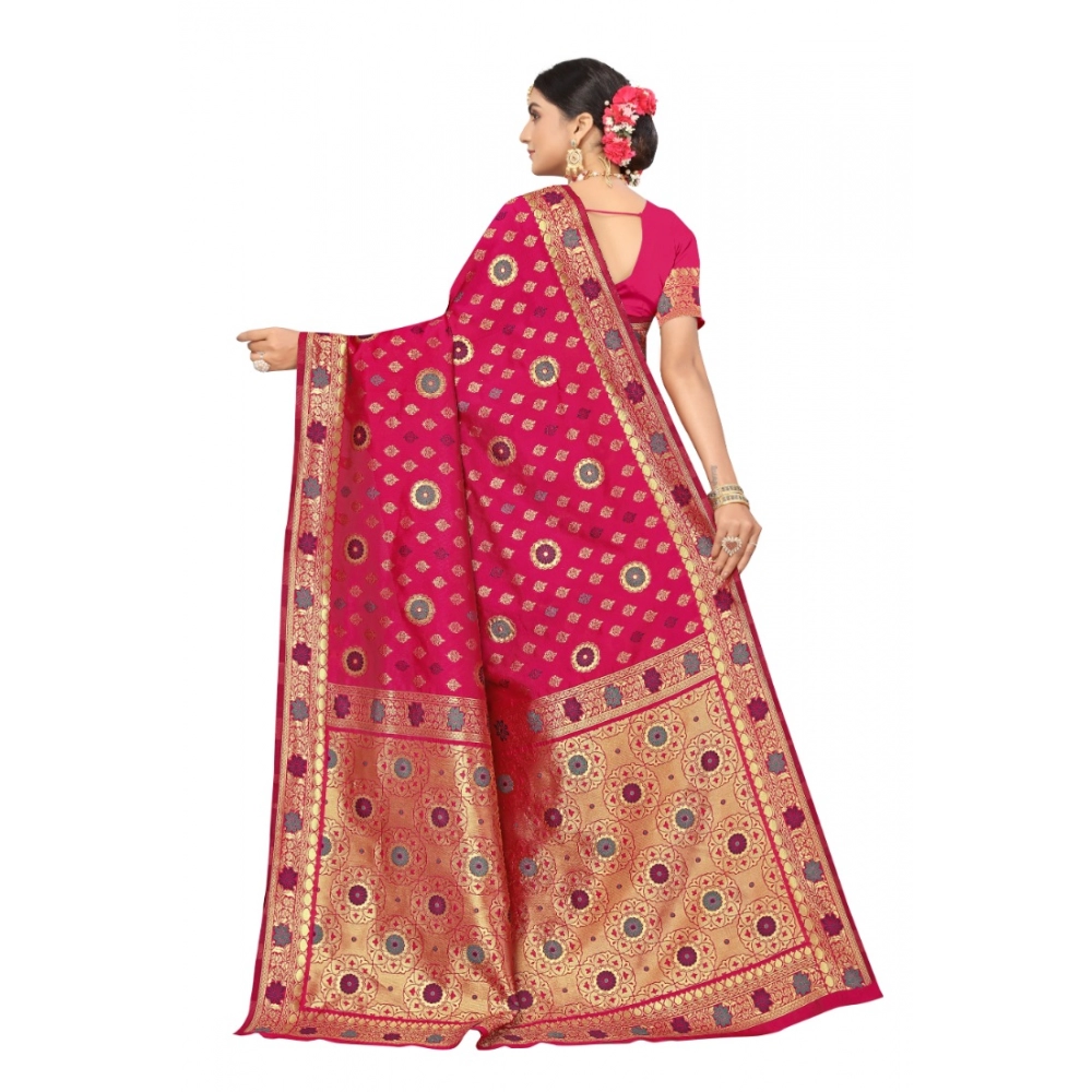 Women’s Banarasi Silk Designer Weaving Saree With Unstitched Blouse (Pink, 5.50 Mtrs)