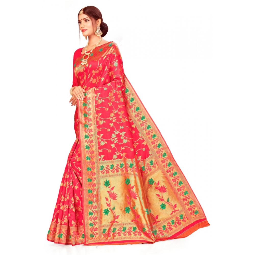 Women’s Banarasi Silk Designer Weaving Saree With Unstitched Blouse (Pink, 5.50 Mtrs)