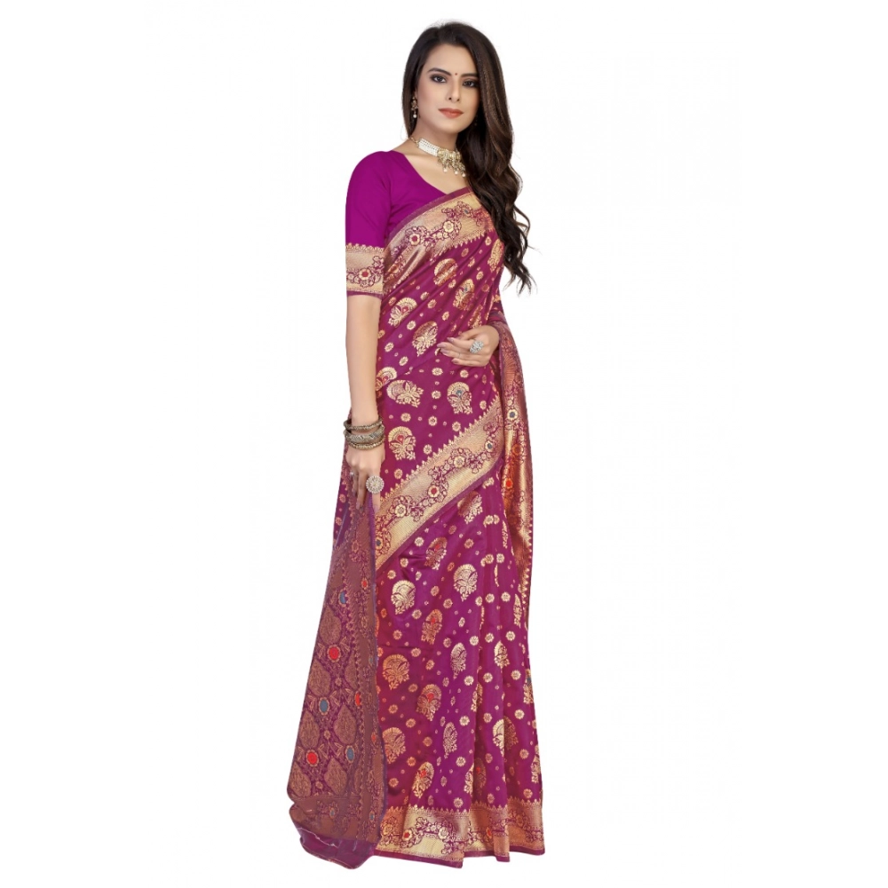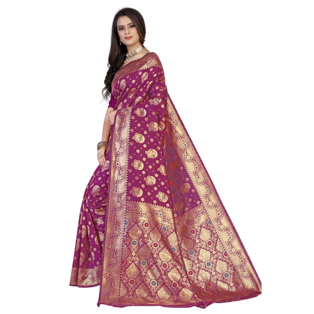 Women’s Banarasi Silk Designer Weaving Saree With Unstitched Blouse (Pink, 5.50 Mtrs)