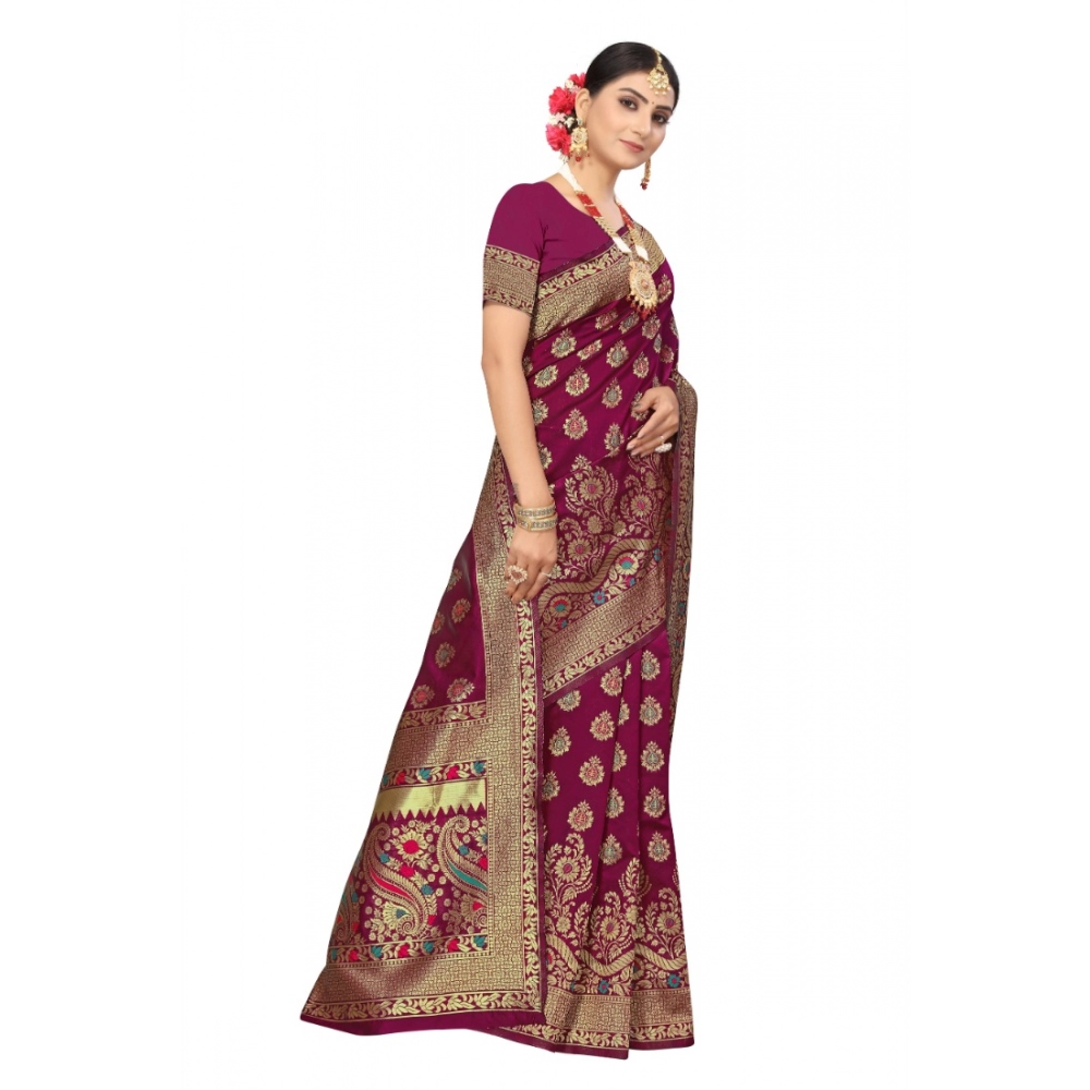 Women’s Banarasi Silk Designer Weaving Saree With Unstitched Blouse (Purple, 5.50 Mtrs)