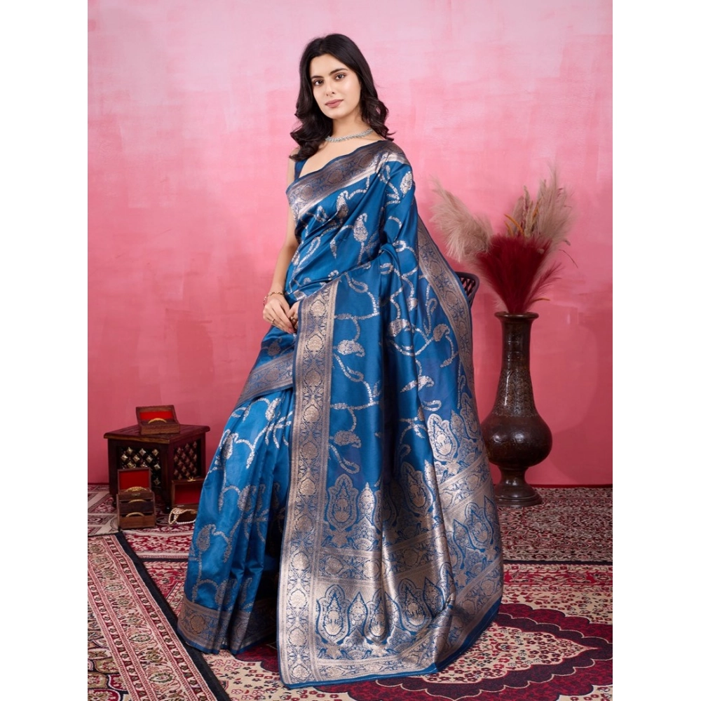 Women’s Banarasi Silk Printed Saree With Unstitched Blouse 5.5Mtr