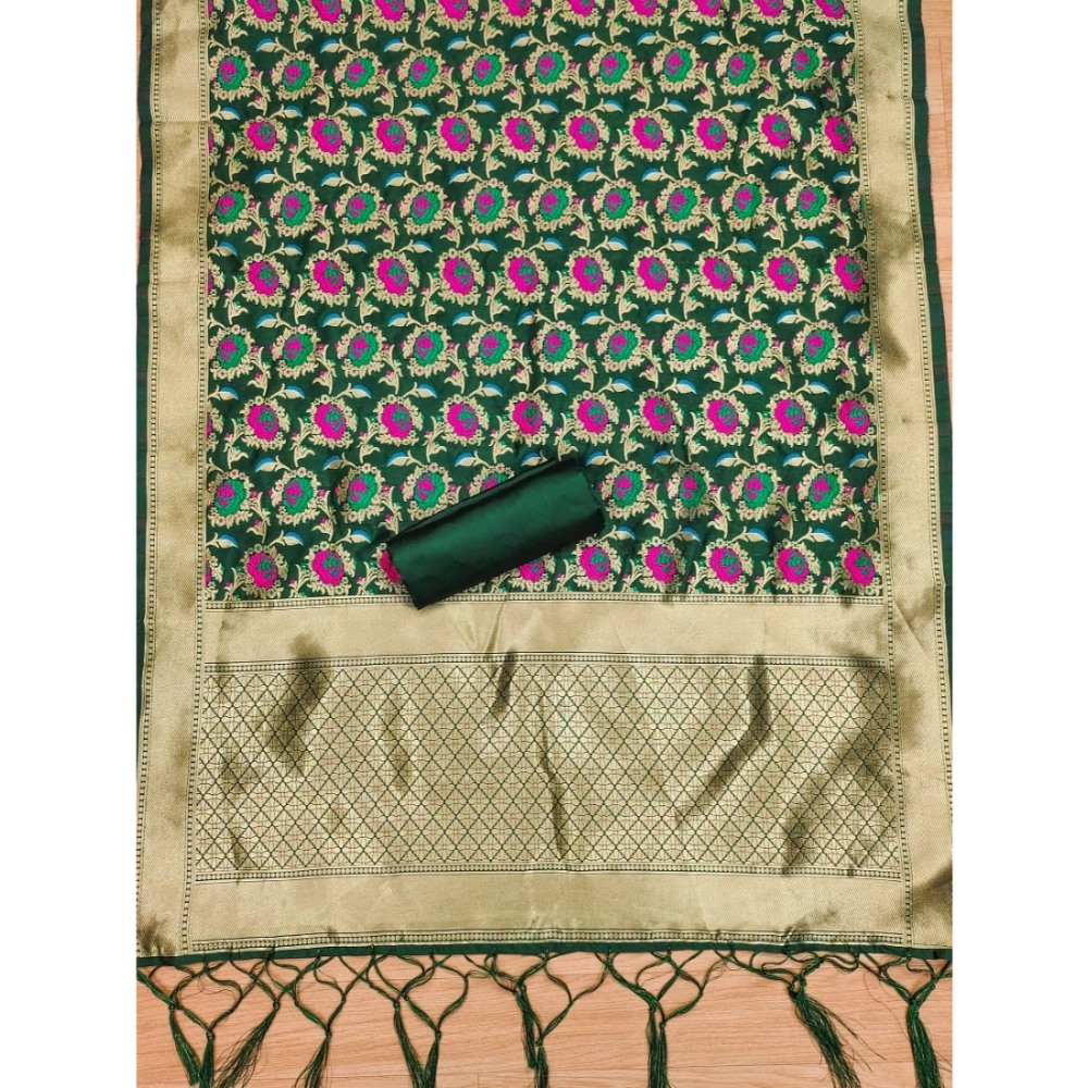 Women’s Banarasi Silk Printed Unstitched Salwar Suit Material With Dupatta (Green, 3Mtrs)