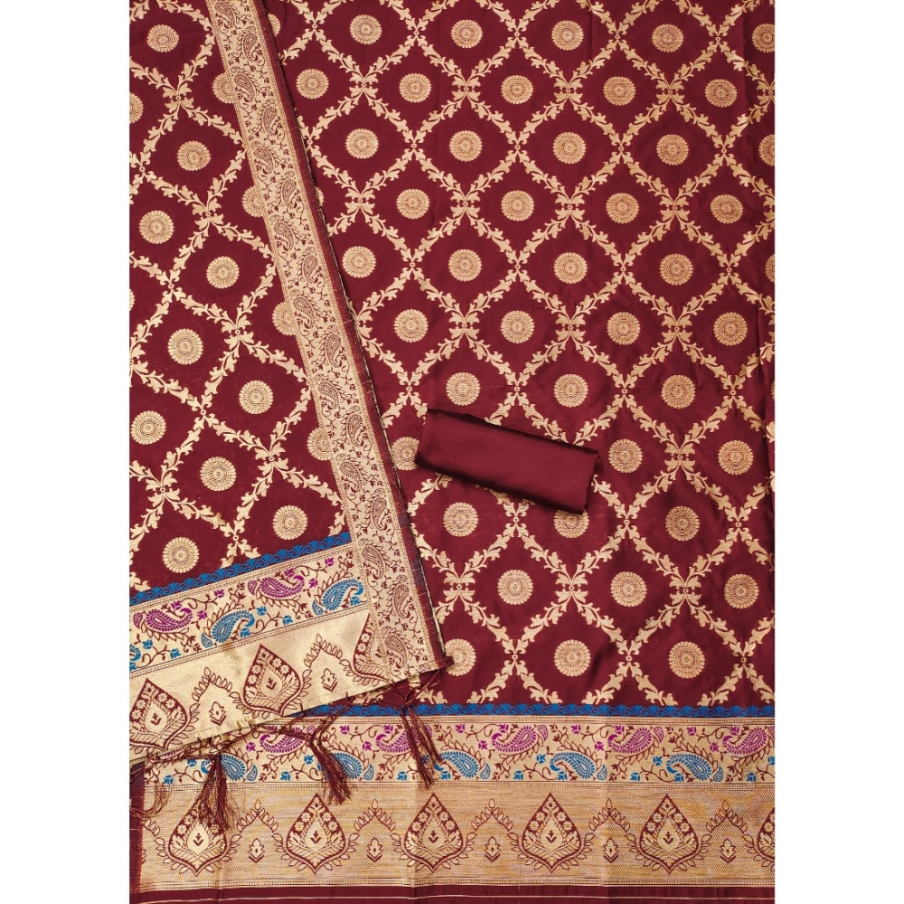 Women’s Banarasi Silk Printed Unstitched Salwar Suit Material With Dupatta
