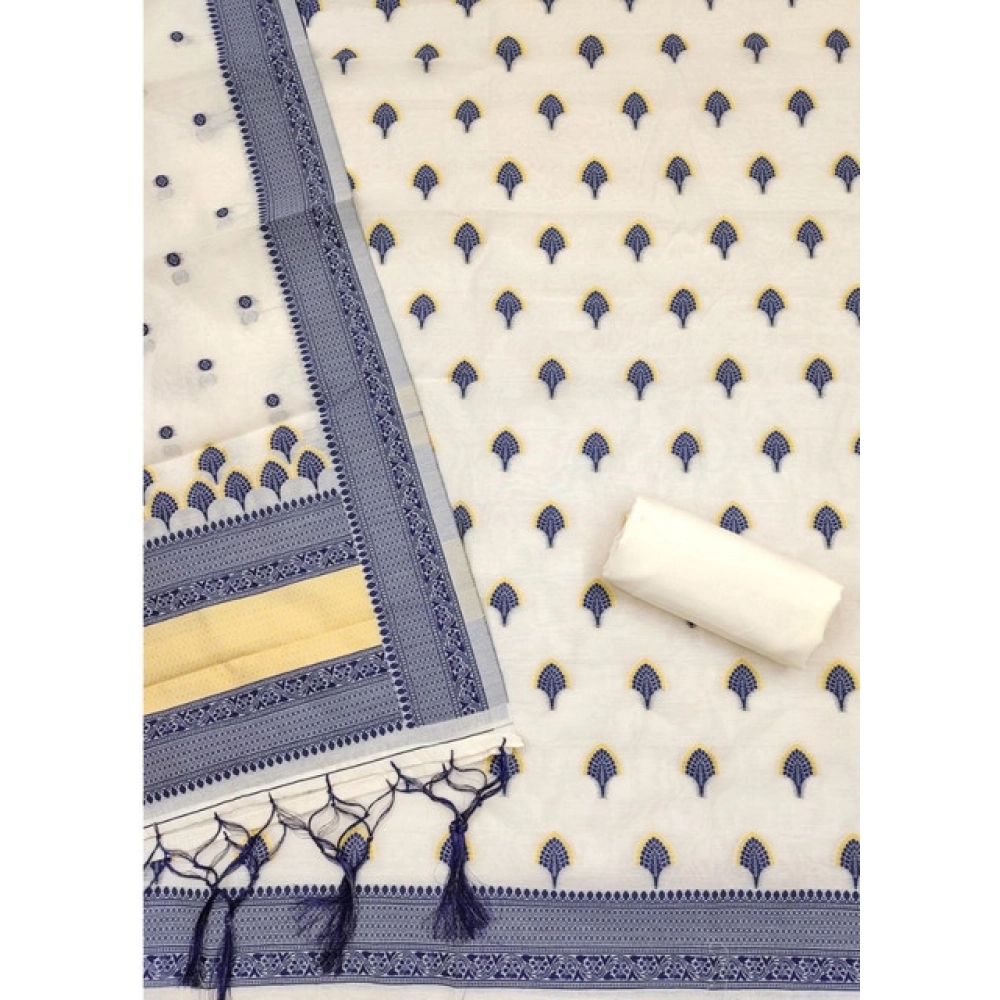 Women’s Banarasi Silk Printed Unstitched Salwar Suit Material With Dupatta (Navy Blue, 3Mtrs)