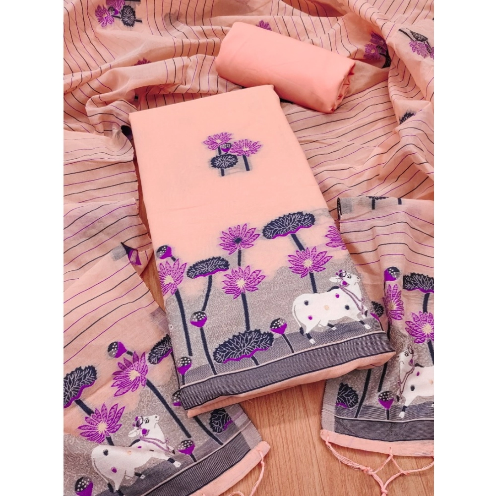 Women’s Banarasi Silk Printed Unstitched Salwar Suit Material With Dupatta