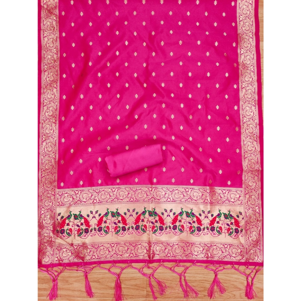 Women’s Banarasi Silk Printed Unstitched Salwar Suit Material With Dupatta (Pink, 3Mtrs)