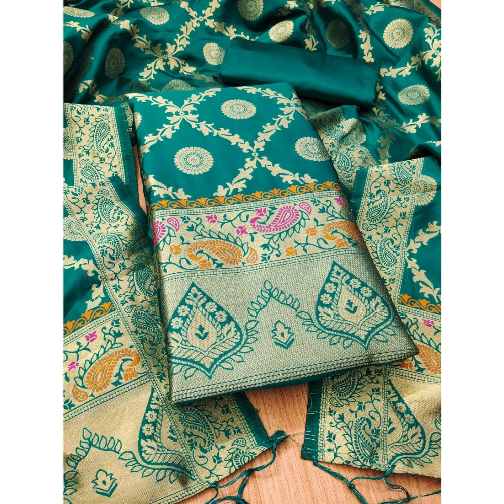Women’s Banarasi Silk Printed Unstitched Salwar Suit Material With Dupatta (Rama, 3Mtrs)