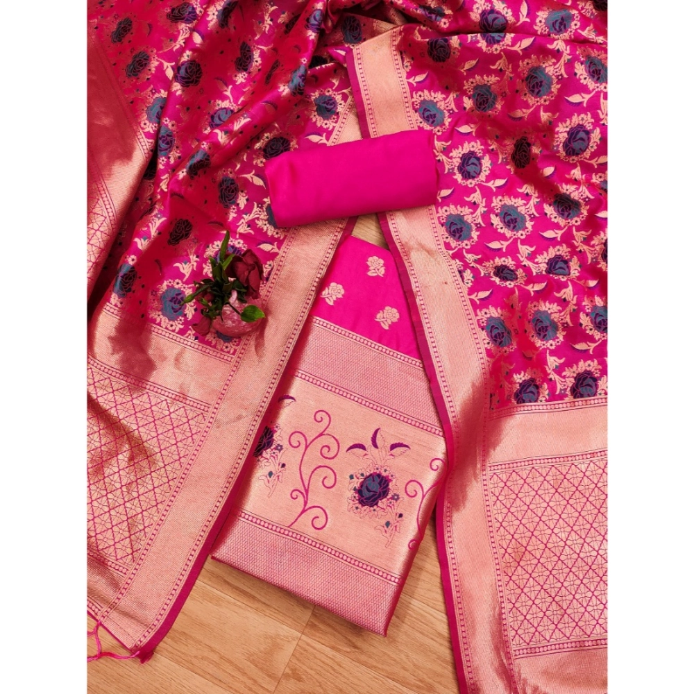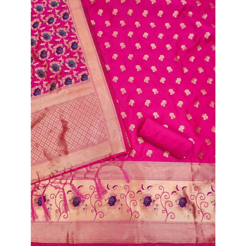 Women’s Banarasi Silk Printed Unstitched Salwar Suit Material With Dupatta