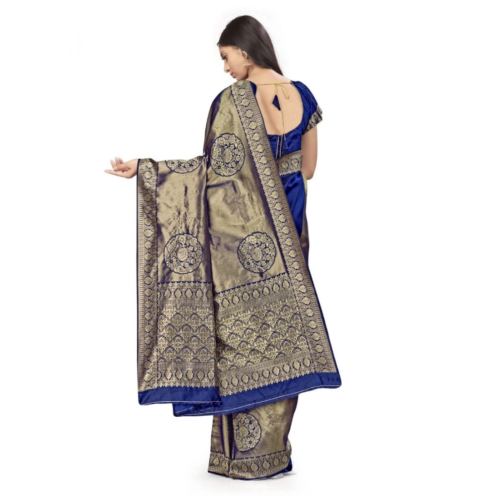 Women’s Banarasi Silk Saree (Navy Blue,5-6 Mtrs)
