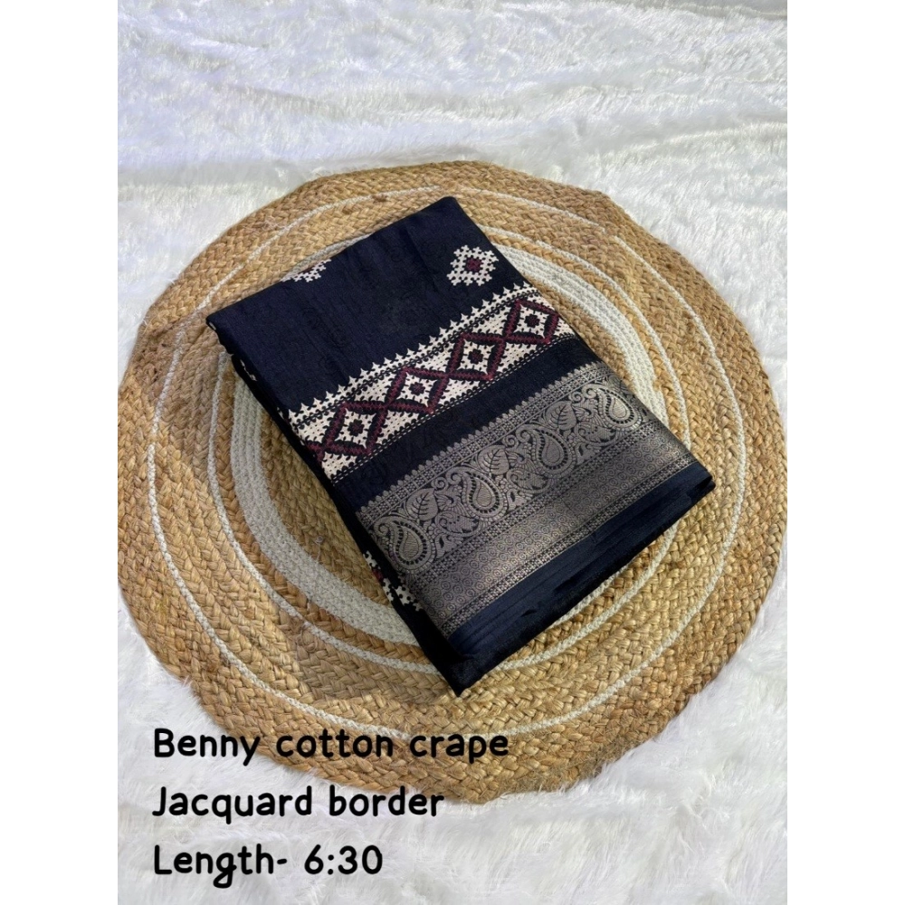 Women’s Benny Crape Printed Saree With Unstitched Blouse 5.5Mtr (Navy Blue)