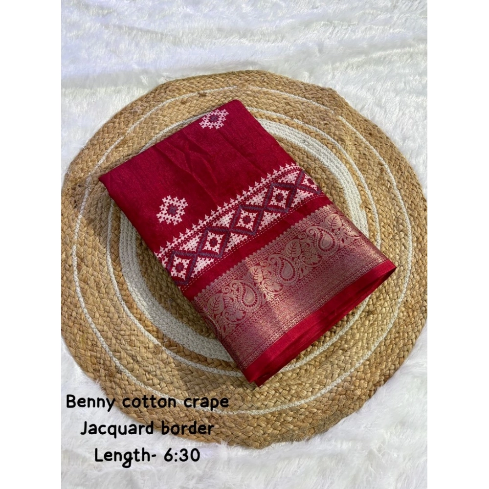 Women’s Benny Crape Printed Saree With Unstitched Blouse 5.5Mtr (Red)
