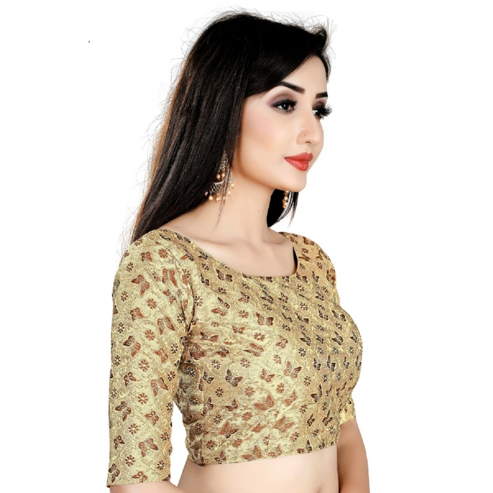 Women’s Brocade, Inner-Cotton Full Stitched Padded Blouse (Chiku cofee).