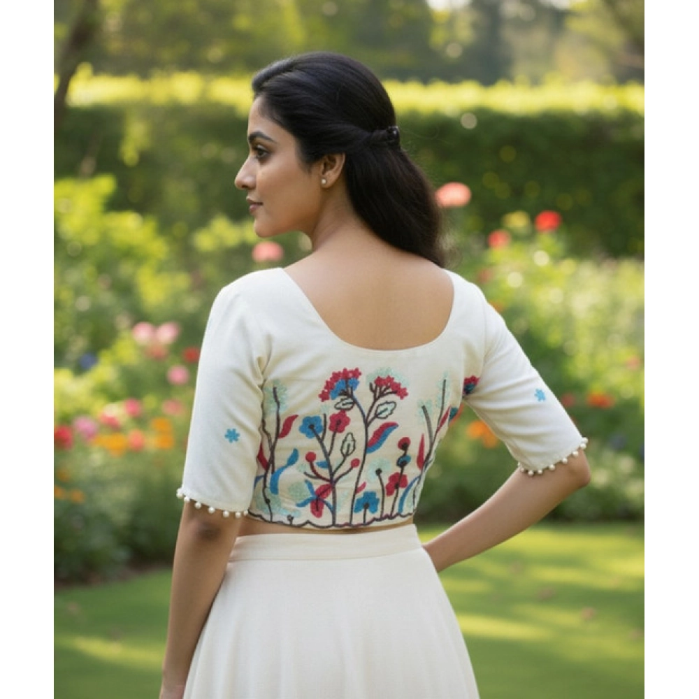 Women’s Cambric Cotton Round Neck Padded Blouse (White, 38 Ready Size (Self-Alterable 36–40)