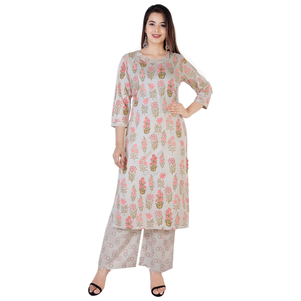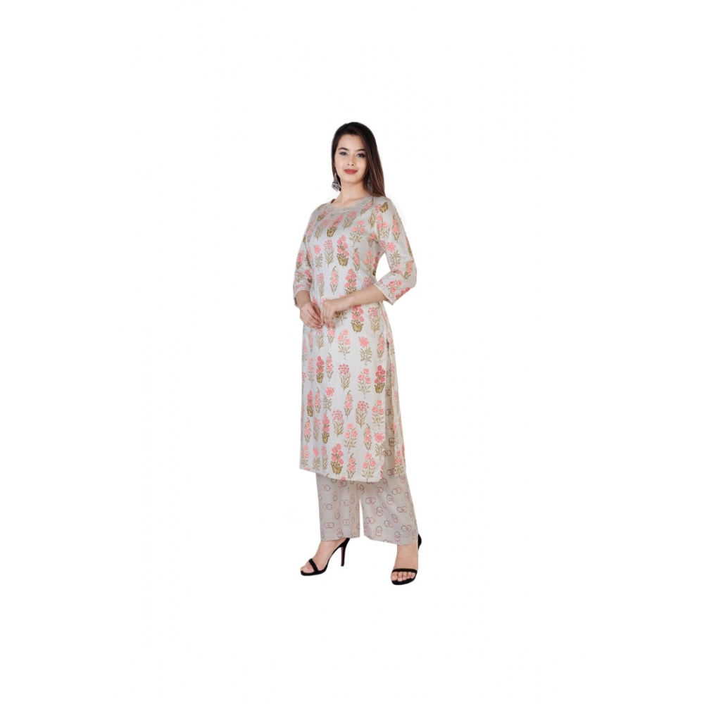 Women’s Casual 3/4 Sleeve Printed Rayon Kurti With Palazzo Set